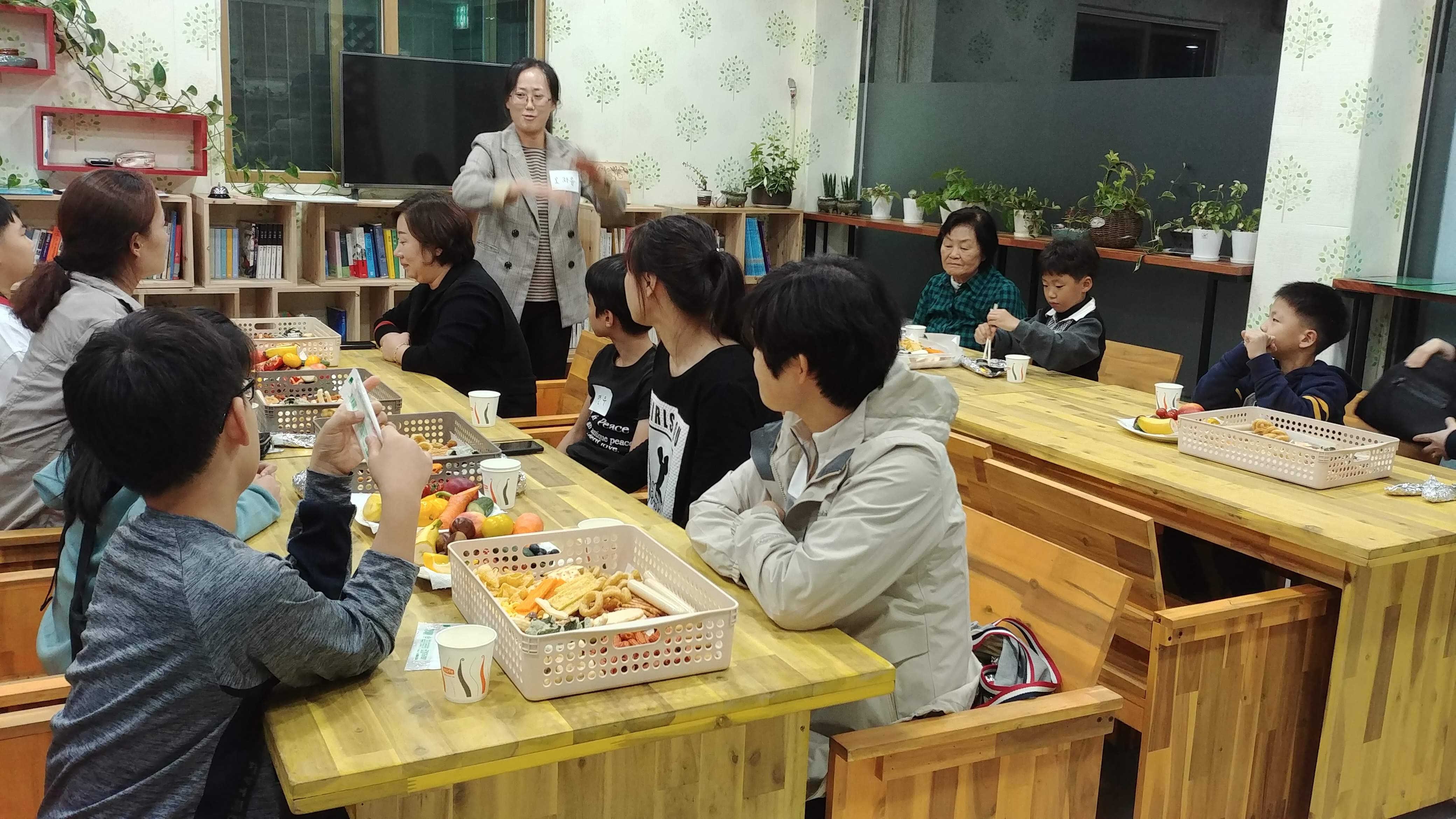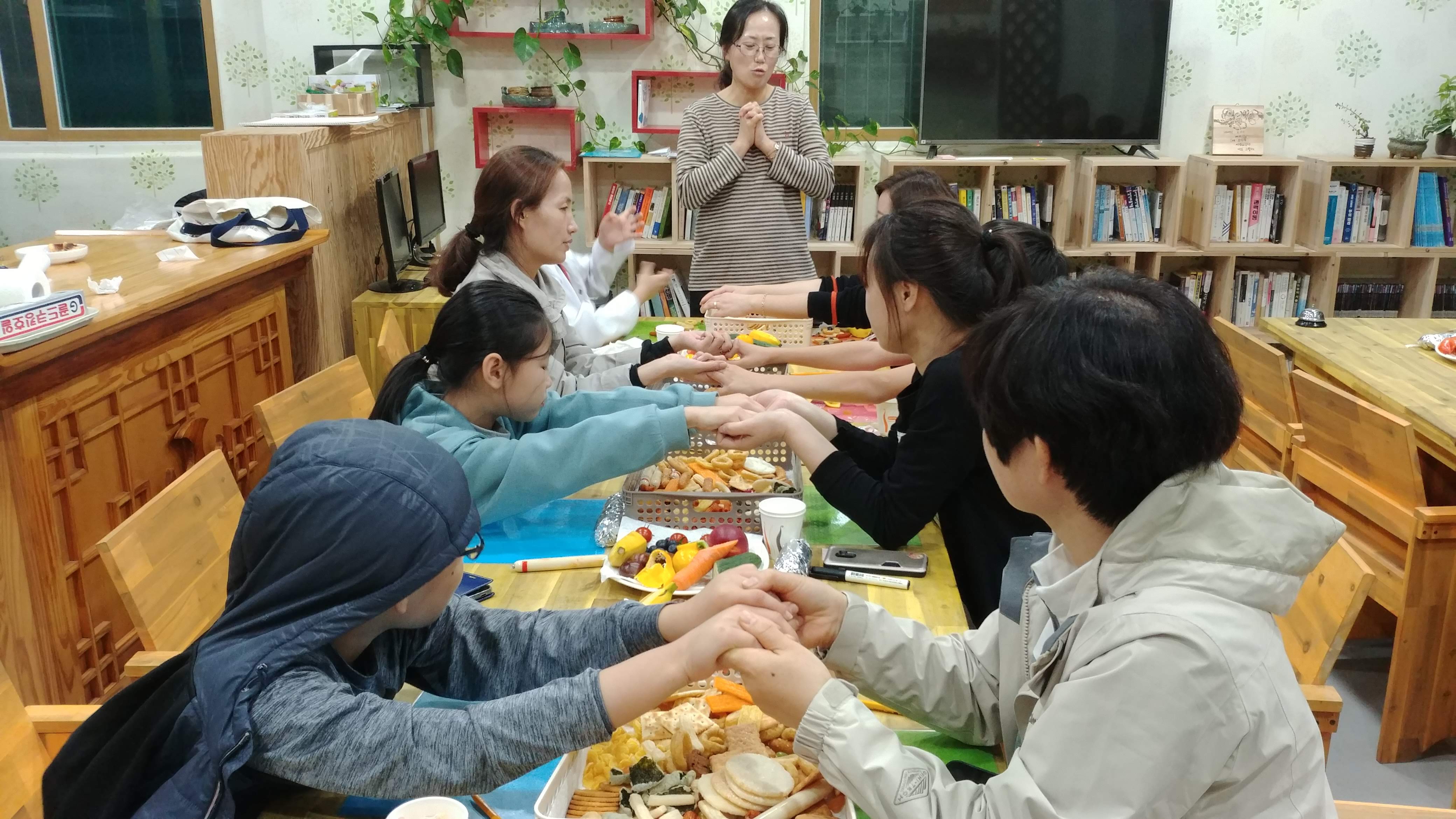 부모님과 함께하는 푸드테라피활동단체/솔숲지역아동센터 2019. 10. 20. 22:442019년 10월 8일.솔숲 친구들이 부모님과 함께 앉았네요.늘 선생님과 친구들과만 프로그램을 진행했었는데오늘은 엄마, 아빠 그리고 할머니가 곁에 함께 했습니다.손을 함께 잡고 마음을 모읍니다.아이들은 기억 속에서 부모님의 마음을 떠올립니다.부모님도 우리 아이와 함께 했던 소중한 기억을 떠올립니다.그리고 각종 과자와 과일, 음식들로 그때 그 마음을 그림으로 표현하면서서로 마음을 열고 그때는 하지 못했던 이야기들을 나눕니다."아.. 엄마의 마음이 이랬구나...""우리 아이가 이런 생각을 했었다니..."서로의 마음을 이해하는어느 때보다 진지하고 의미있는 시간이었네요.