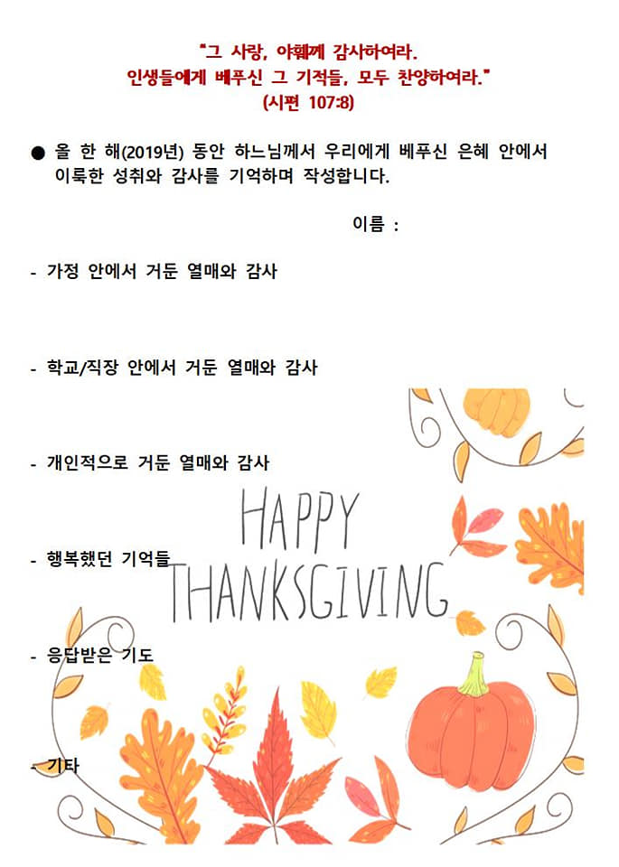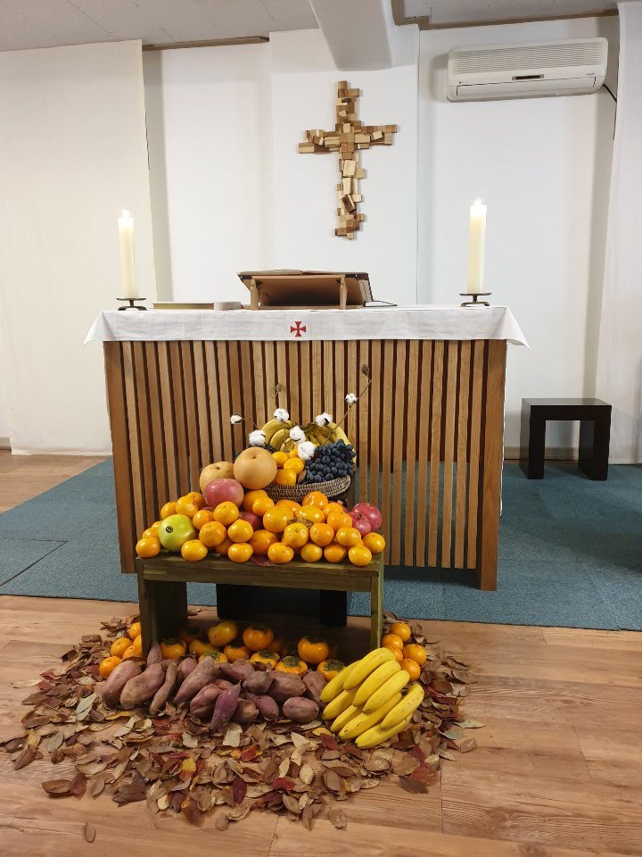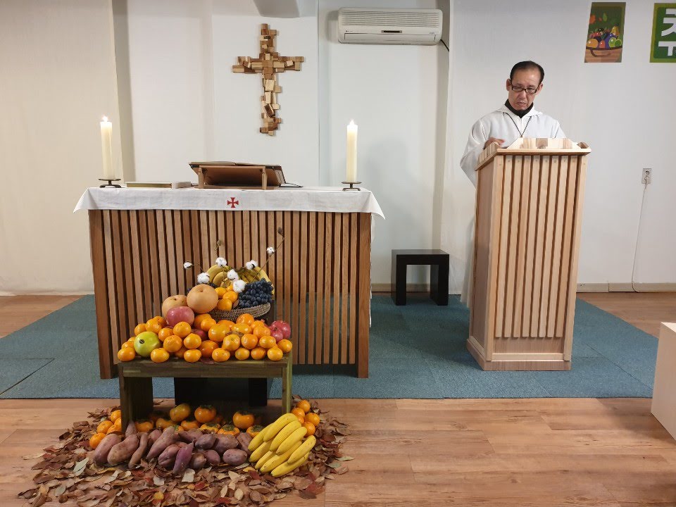 인천나눔교회 추수감사주일활동단체/신앙공동체 2019. 11. 17. 14:292019년 11월 17일 주일인천나눔교회 추수감주일은 소박합니다.시골(?) 교회들은 직접 수확한 곡식이며 과일 온갖 종류의 채소들로한아름 재단을 채워 놓는 것을 봅니다.하지만 도시 교회인 우리교회는...비닐 포장된 마트의 과일들로 제단앞을 장식할 수밖에...^^대신 금년에는 추수감사주일을 앞두고 신부님이 작은 숙제를 내 주었습니다."올 한 해, 나는 나의 삶의 자리에서어떤 열매를 거두었는가 작성해 오시라."애찬 후 함께 추수감사절 과일을 나누어 먹으며준비한 숙제 열매도 나누었습니다.공통점은... "채우기 어려웠다..ㅠㅠ"그런데 다들 이렇게 별탈없이 한 해를 보낸 것이사실은 진정한 열매이자 축복이었다고^^