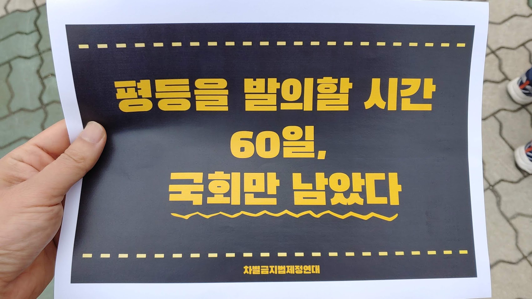 "이럴 때 ‘담대한 한 걸음’을 내딛으라고 선출한 게 바로 ‘국회의원’입니다. 그러니 어깨를 쫙 펴고 당당하게 포괄적 차별금지법 제정에 앞장서십시오.