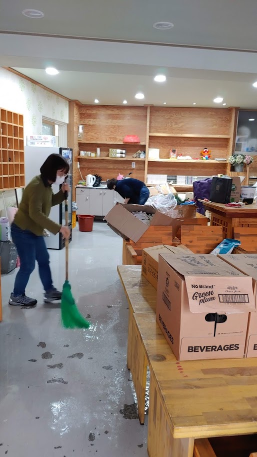 신발이 다 젖자 벗어버리고 물을 퍼담아 버린 선생님들께 감사