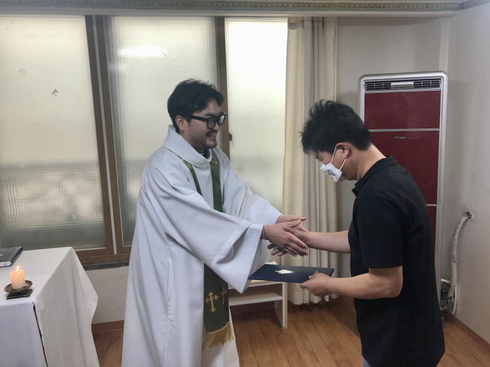교회위원 오병석 발렌티노 지난 주일(10월 2일) 인천나눔의집 신앙공동체는 새 교회위원 위임식을 진행했습니다.9월 교회위원회와 신자총회를 거쳐 선출된 세 분의 교회위원을 위해 기도해주십시오.* 신자회장 : 주영분 엘리사벳* 사제회장 : 조명덕 바나바* 교회위원 : 오병석 발렌티노모든 지혜의 근원이시며, 모든 용기의 원천이신 하느님,