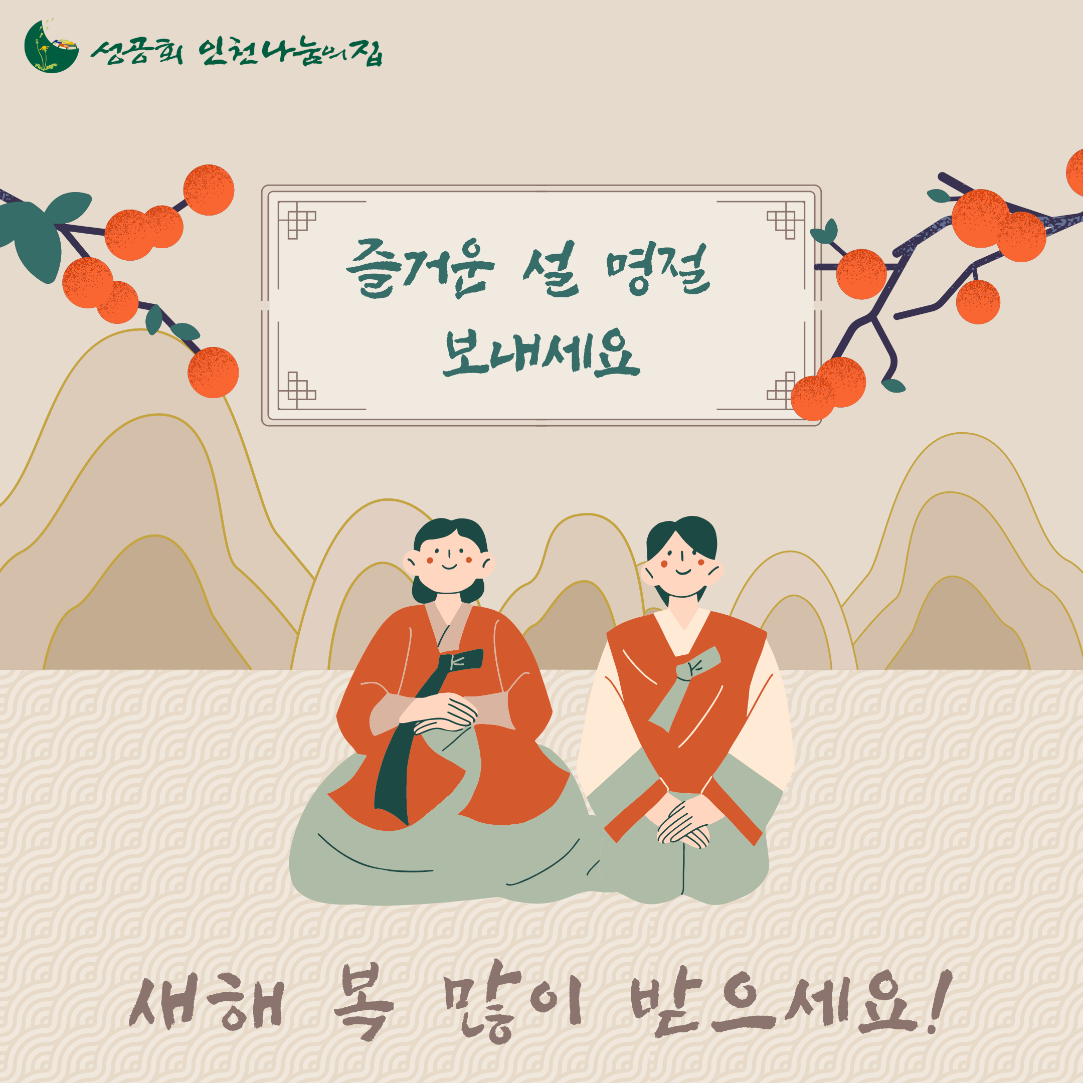 설 명절 인사드립니다활동단체/사무국 2023. 1. 21. 15:34인천나눔의집을 위해 늘 기도와 후원을 해주셔서 깊이 감사드립니다.안전하고 즐거운 설 명절 보내시길 기도합니다."새해 복 많이 받으세요!"