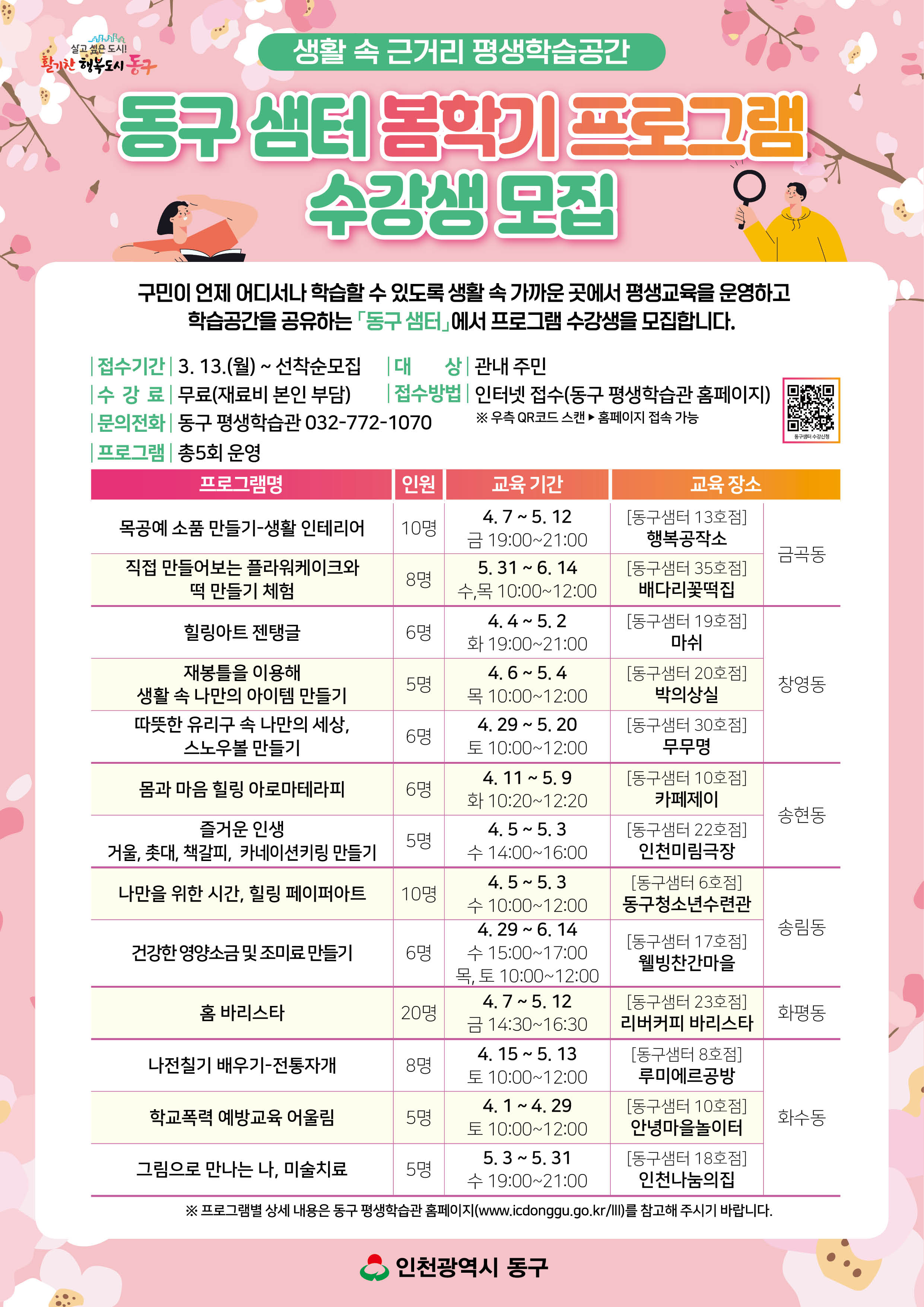 <동구샘터 봄학기 프로그램 수강생 모집 안내>