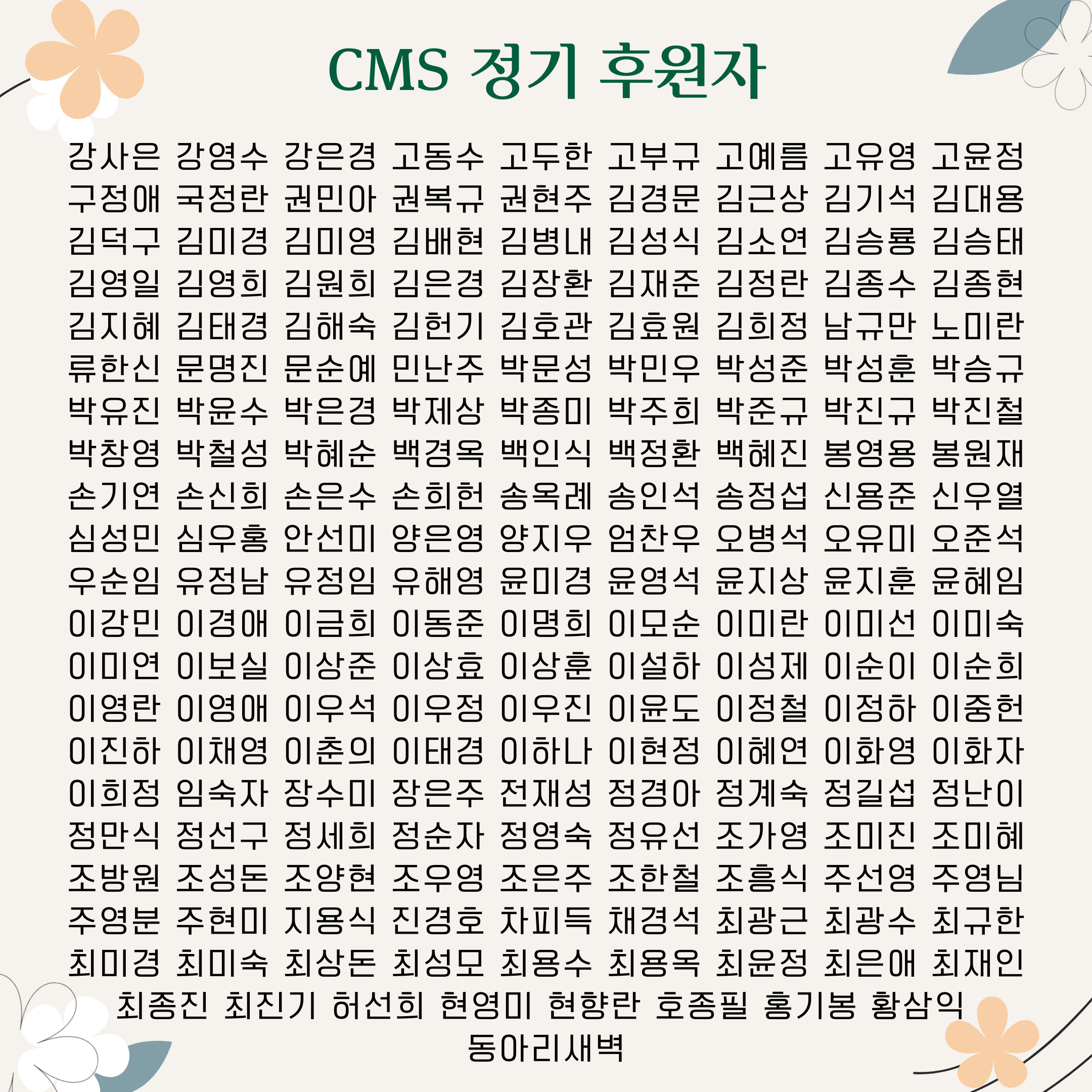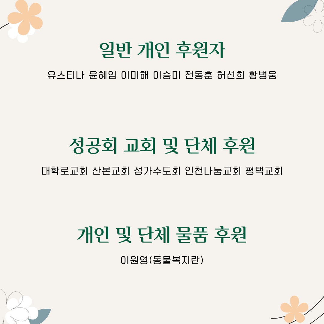 * 혹여 오기나 누락된 후원자분은 이 게시물 아래 댓글로 알려주시거나 나눔의집으로 연락주십시오.