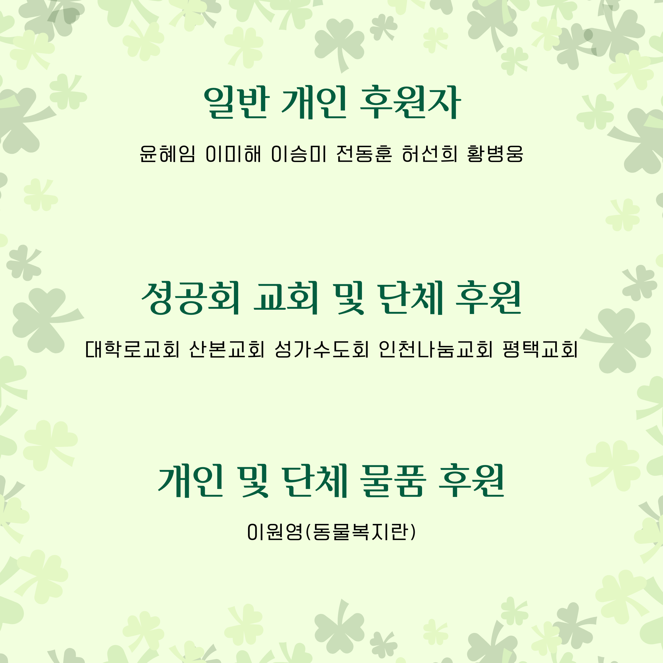 * 혹여 오기나 누락된 후원자분은 이 게시물 아래 댓글로 알려주시거나 나눔의집으로 연락주십시오.