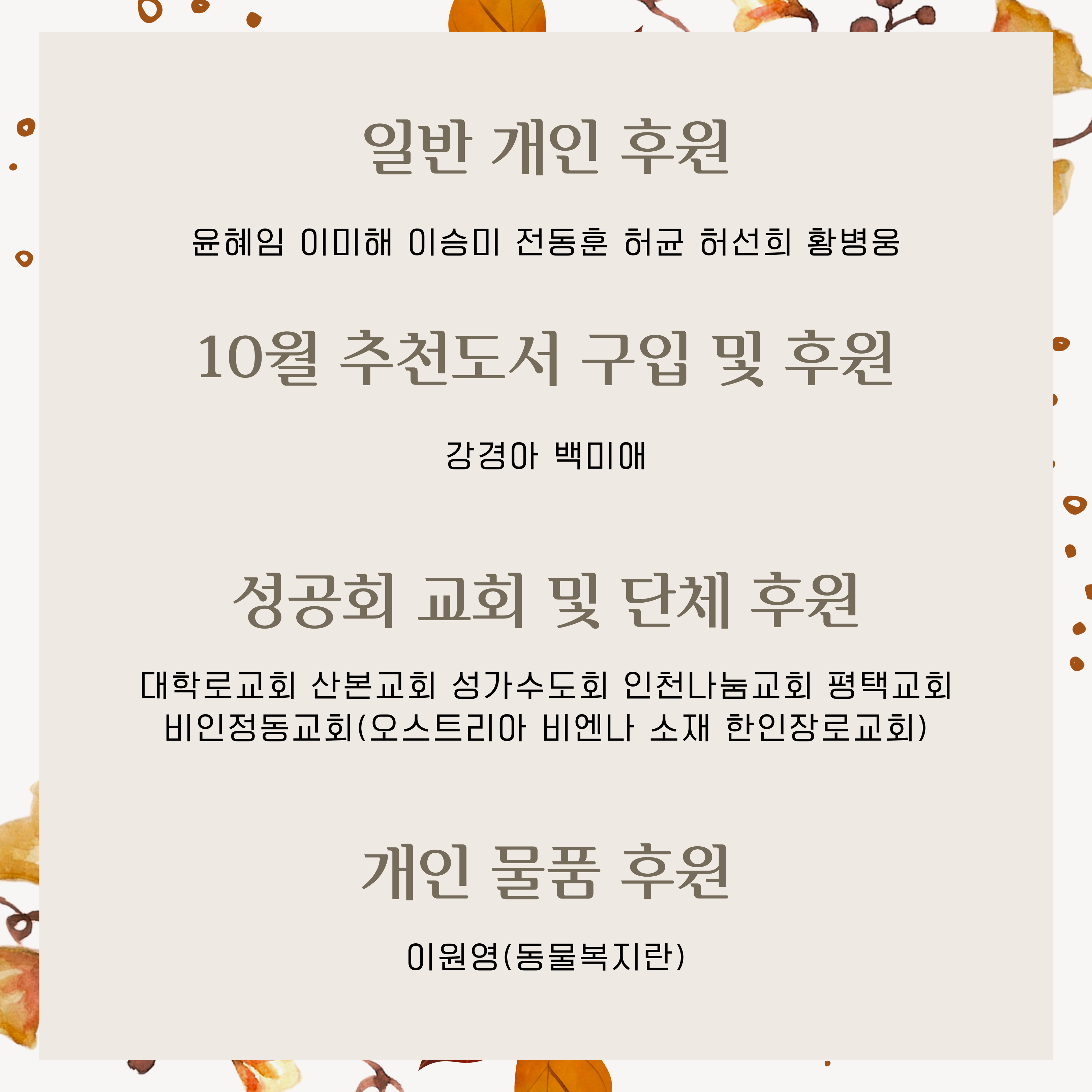 * 혹여 오기나 누락된 후원자분은 이 게시물 아래 댓글로 알려주시거나 나눔의집으로 연락주십시오.
