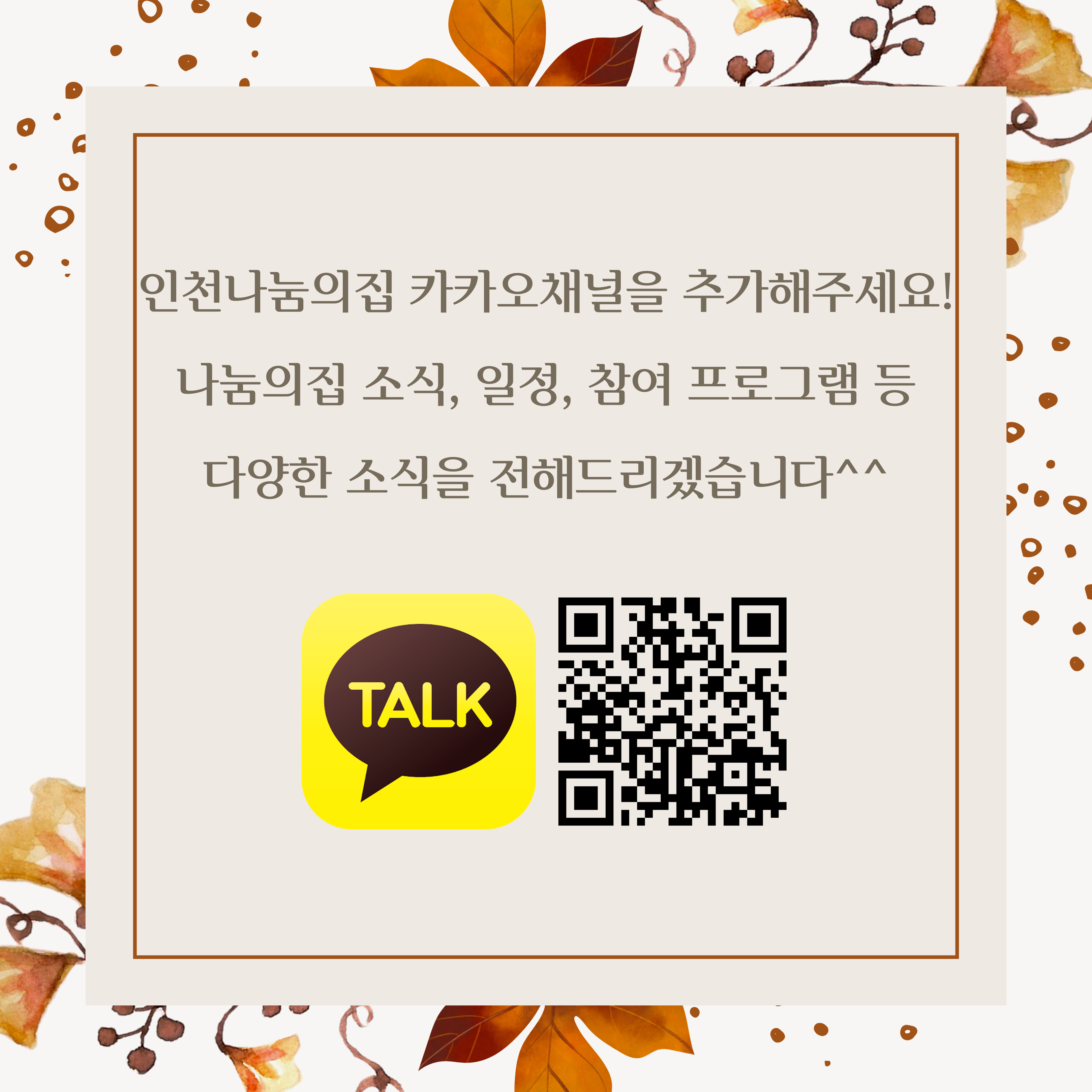 * 인천나눔의집 카카오채널 : http://pf.kakao.com/_xlnRmb