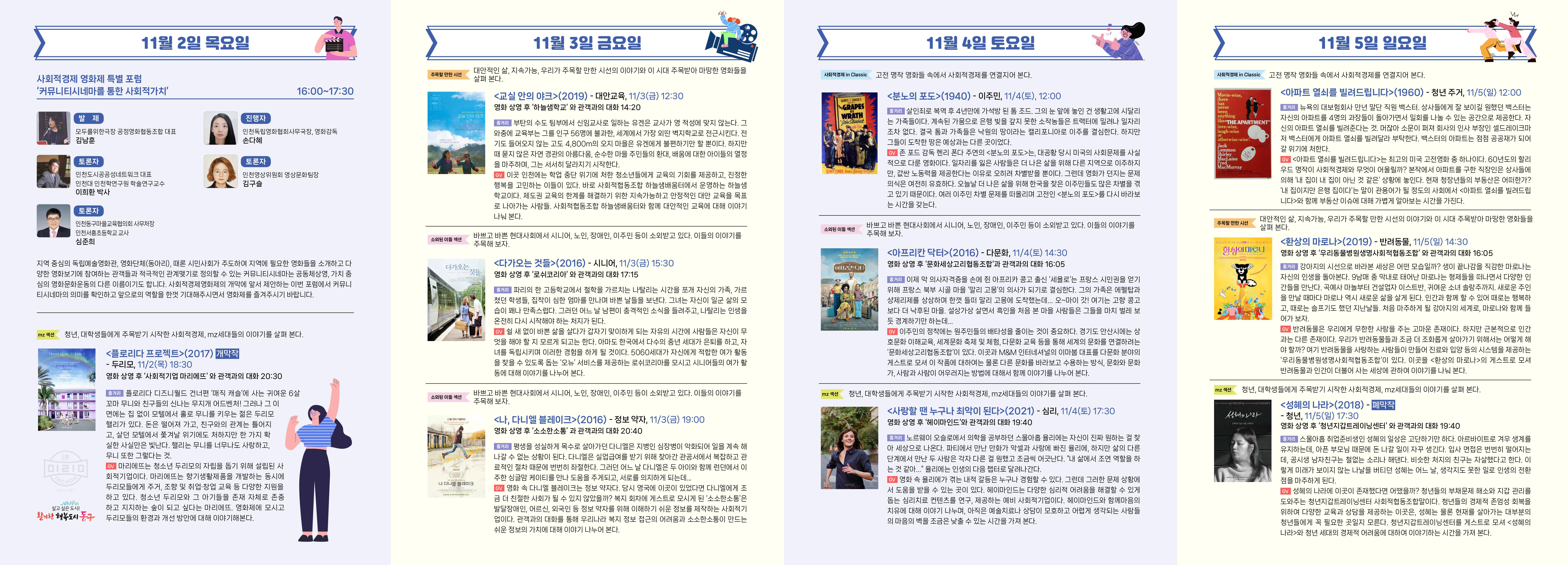 영화를 통해 우리 사회의 문제를 들여다보고, 그 대안을 함께 고민하는 시간을 가져보시는 건 어떨까요?