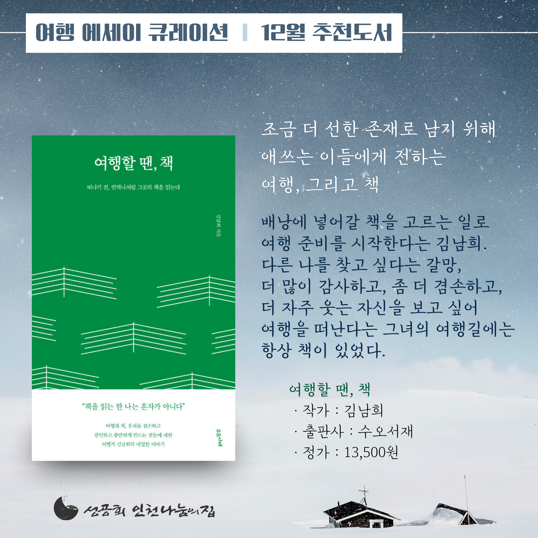 12월 추천도서는 김남희 작가의 《여행할 땐, 책》입니다.