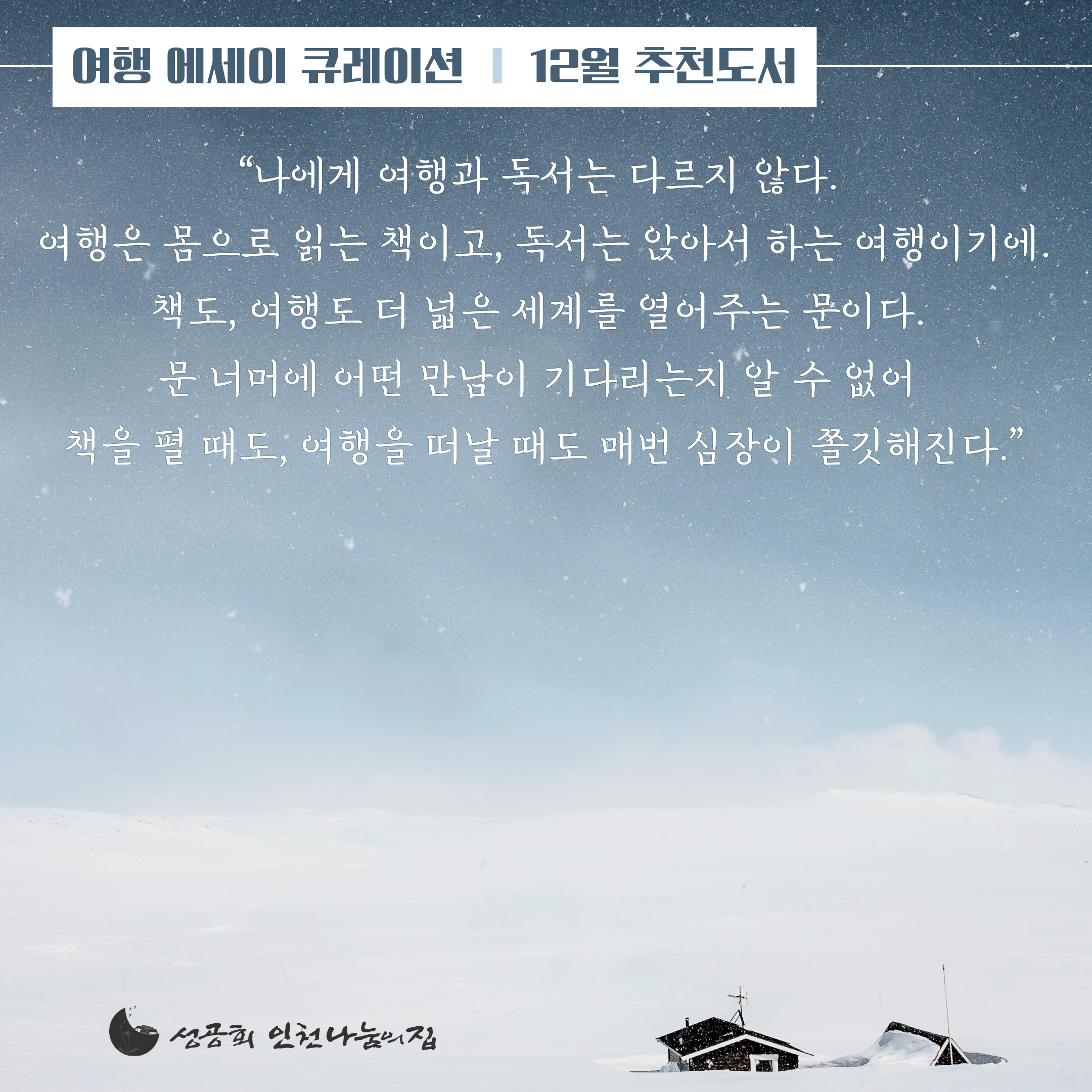 [책으로 떠나는 여행 + 후원] 12월 추천 여행 에세이활동단체/사무국 2023. 11. 9. 17:06