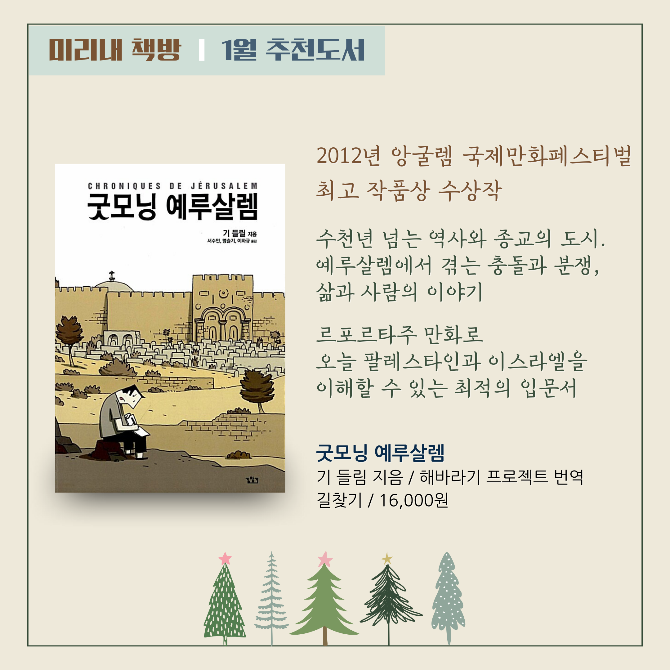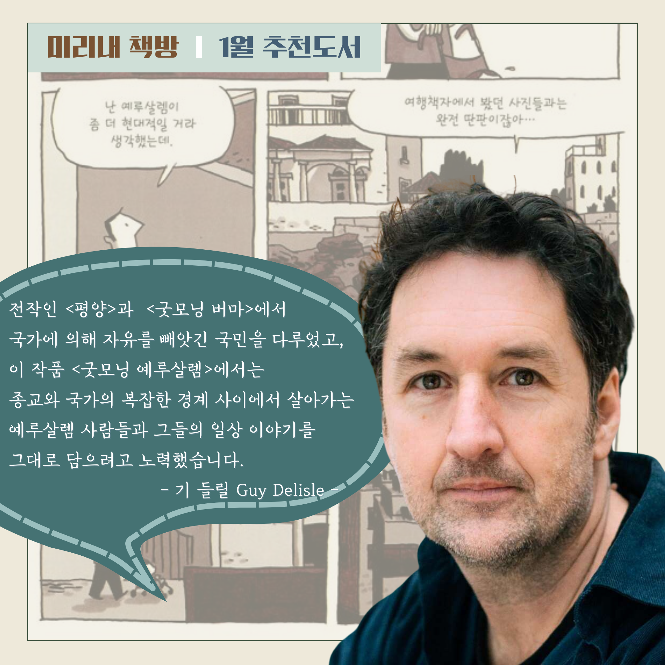내년 1월 추천도서는 르포르타주 만화 <굿모닝 예루살렘>입니다.