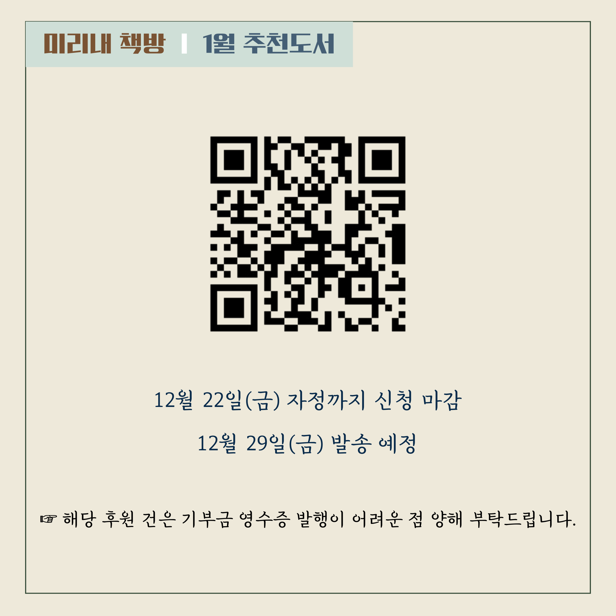 [미리내 책방] '24년 1월 추천도서 안내활동단체/사무국 2023. 12. 6. 17:31