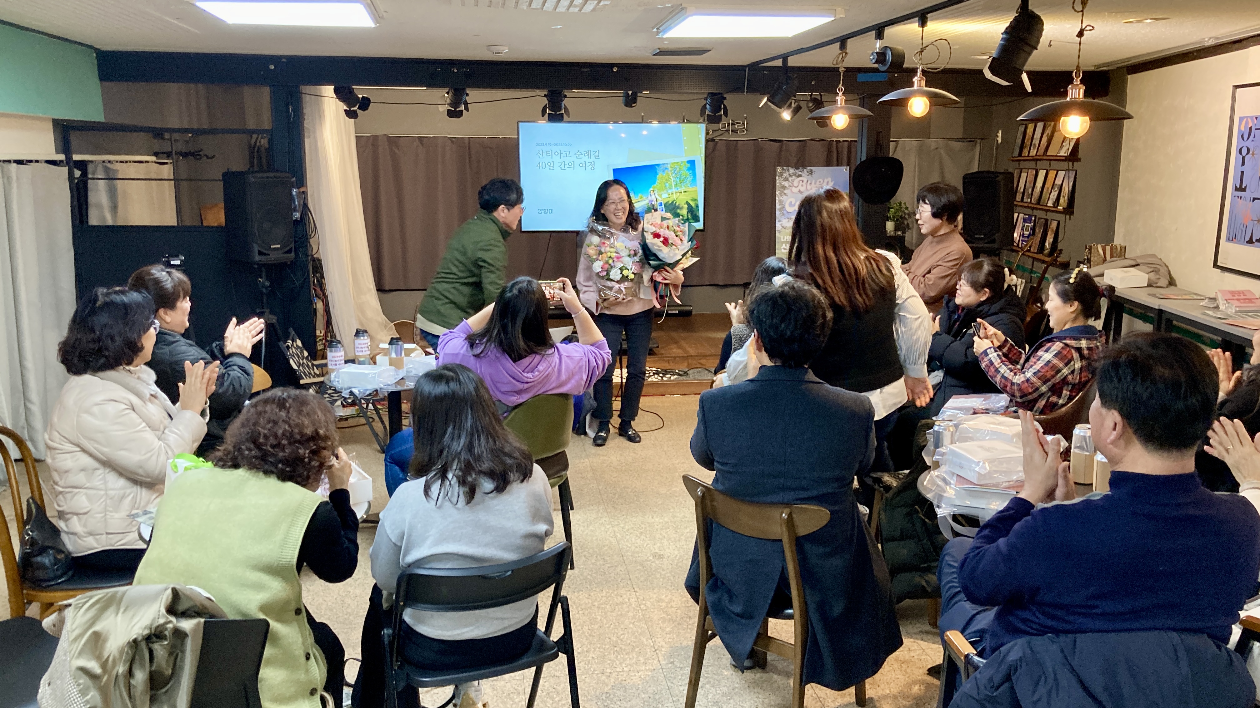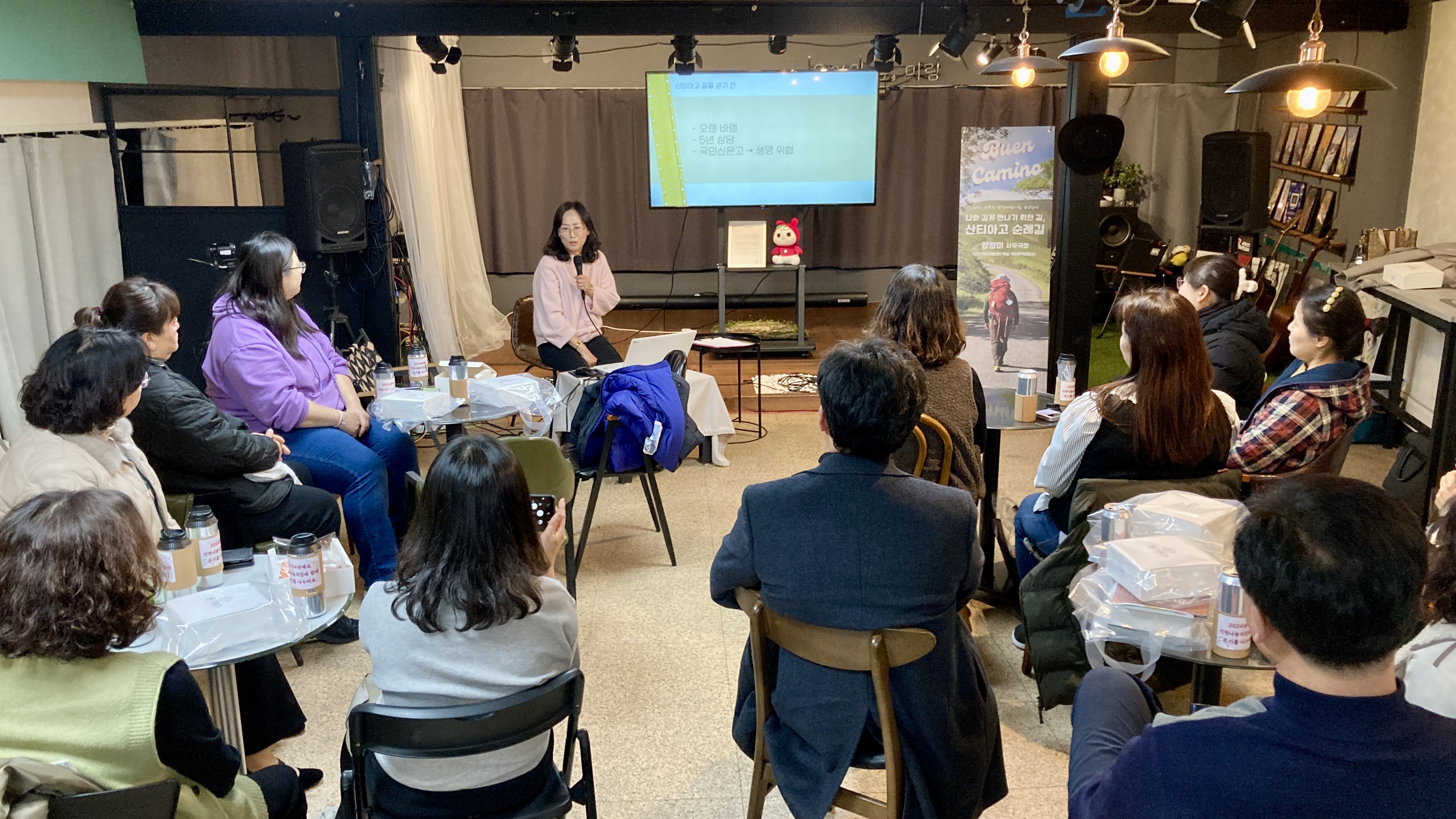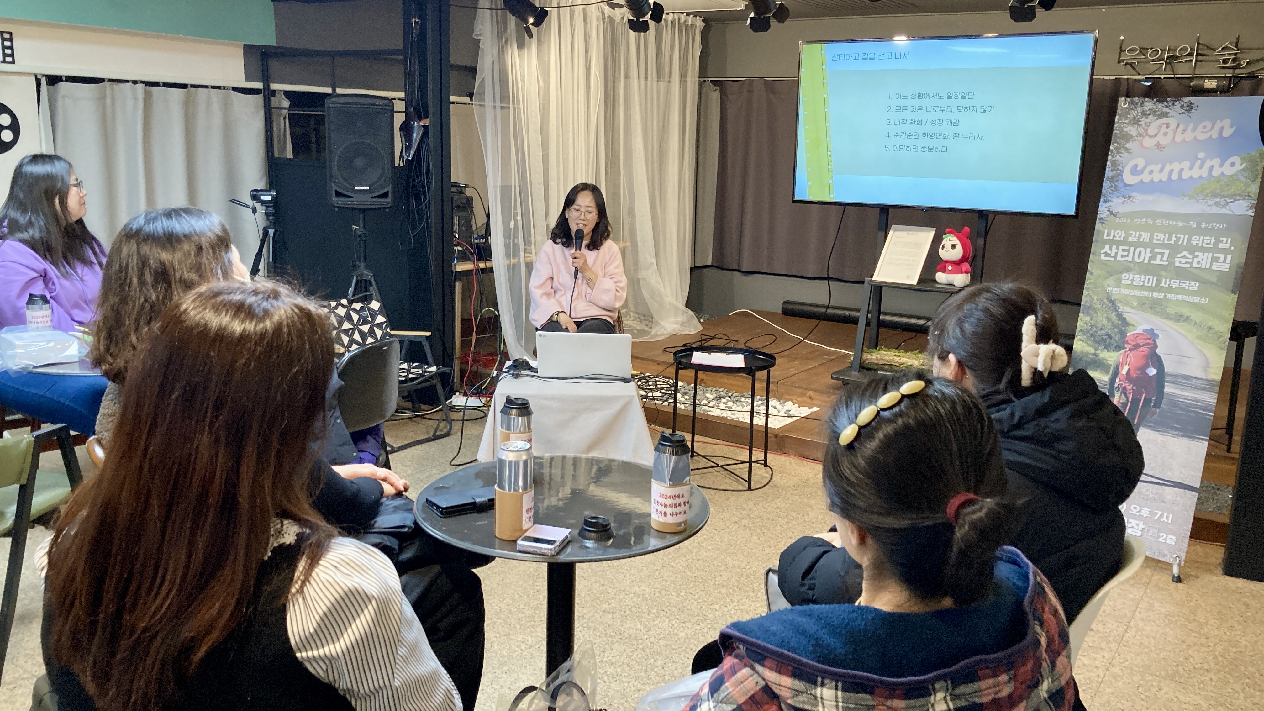 지난 가을 산티아고 순례길을 다녀오신 양향미 사무국장님(가정폭력상담소)을 모시고 여정의 소회를 함께 나누는 시간이었는데요. 심리상담가가 나누는 순례길의 치유를 통해 나와 내 가족, 내 곁에 있는 이들을 다시 헤아려 볼 수 있었던 소중한 시간이었습니다.