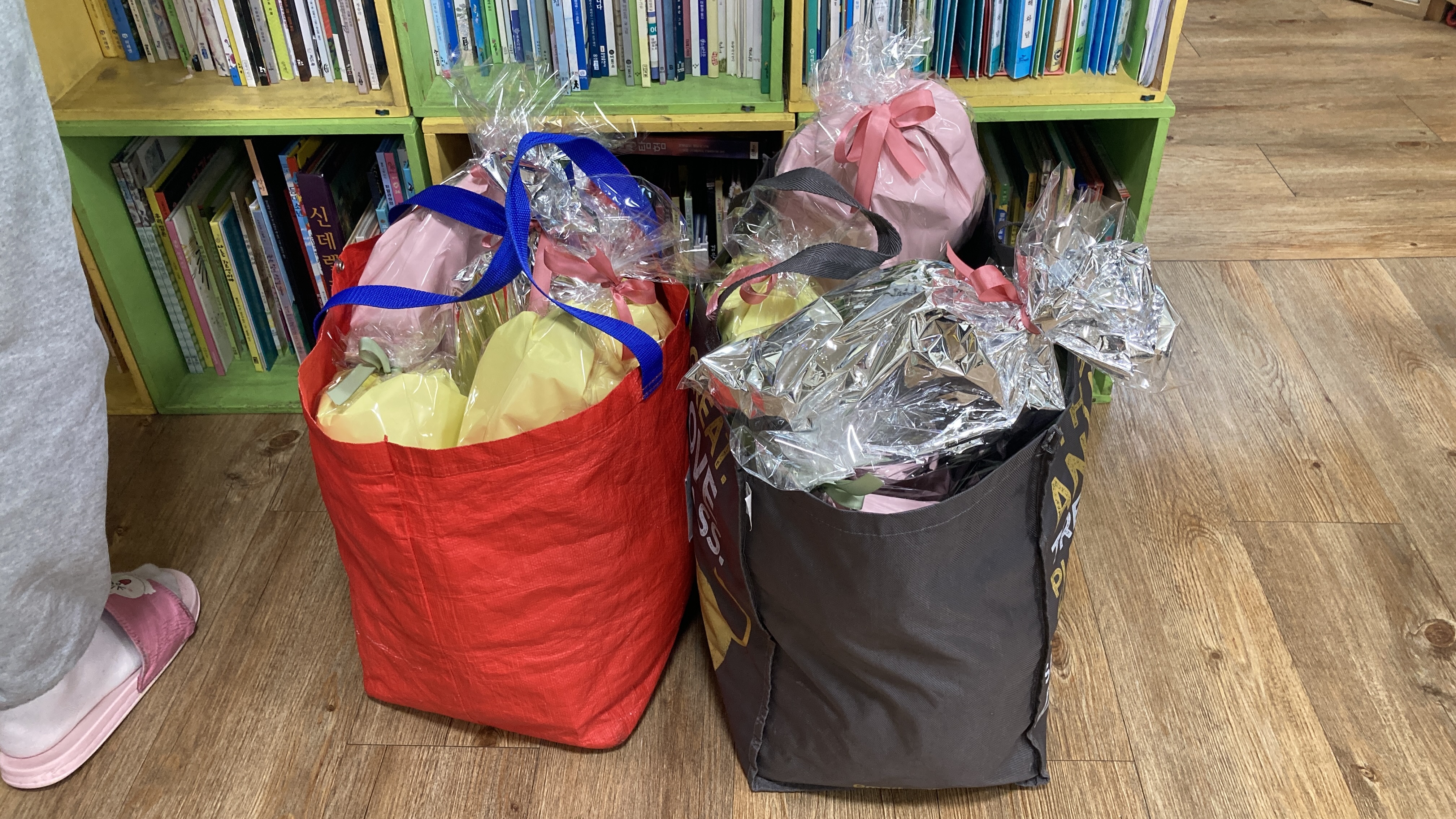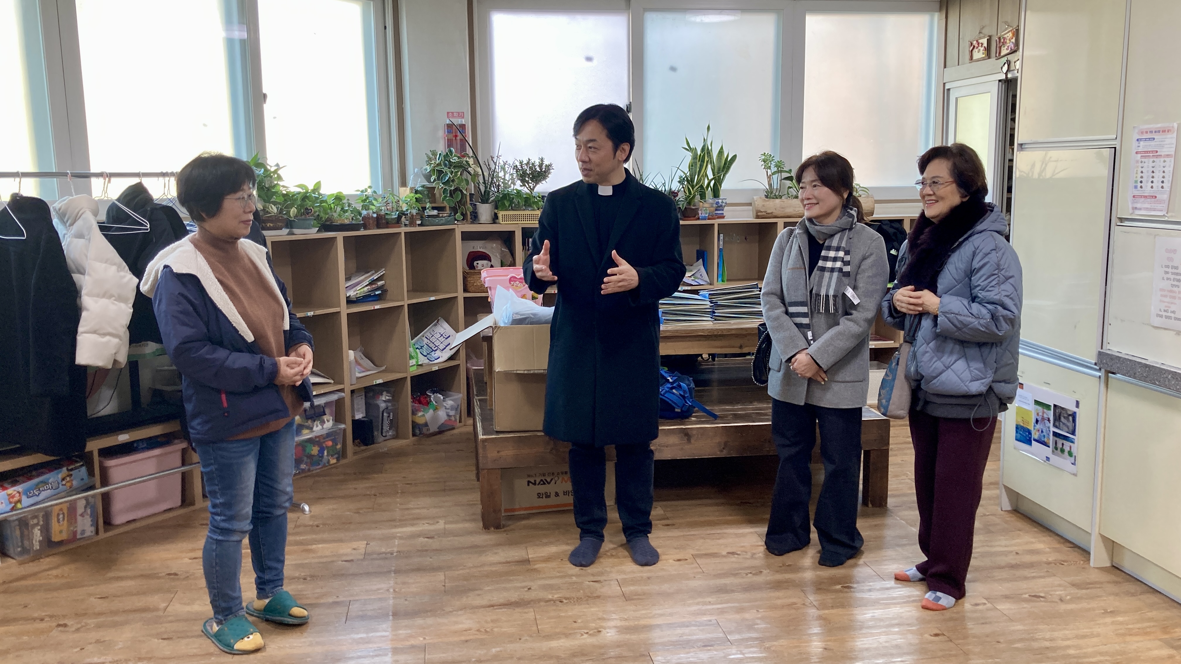 지난 27일(수) 산본교회의 최용준 바우로 신부님과 백옥경 안나, 윤희진 에스더 전현 어머니회장님이 성탄 마구간 봉헌금으로 우리 솔숲 • 해와달 아이들을 위해 정성스레 준비하신 과자 선물 꾸러미를 전달해 주셨습니다.