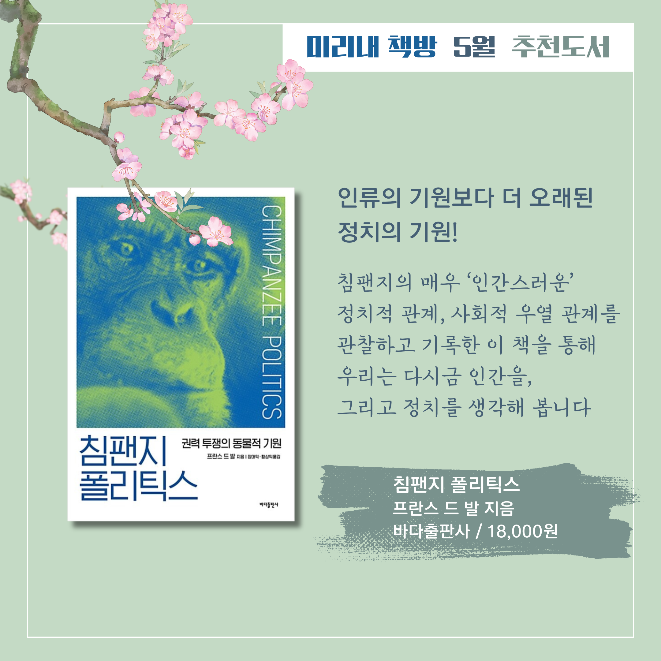 침팬지의 매우 정치적인 관계를 관찰하고 기록한 이 책을 통해 다시금 사람과 정치를 생각해 보시는 건 어떨까요?