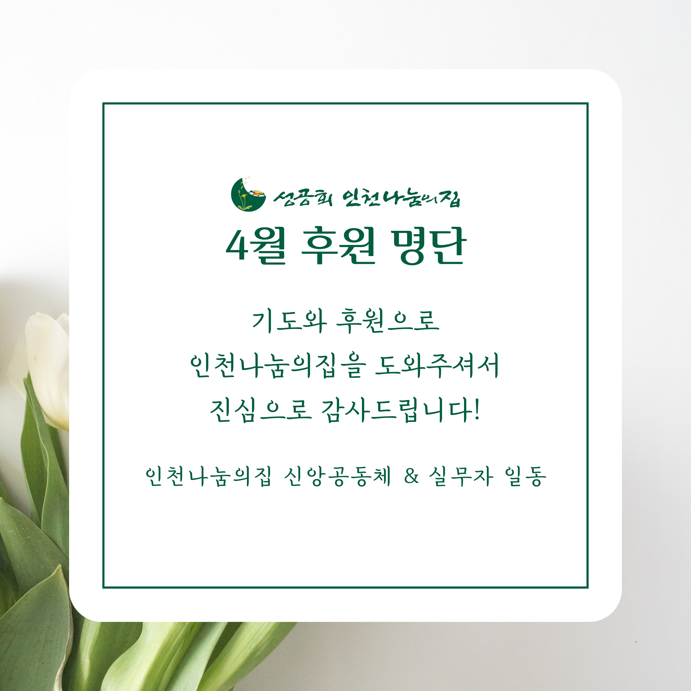 4월 인천나눔의집(솔숲지역아동센터, 해와달지역아동센터, 신앙공동체) 소식을 전해드리며, 4월 한 달간 기도와 후원으로 도와주신 모든 분께 감사 인사를 드립니다!