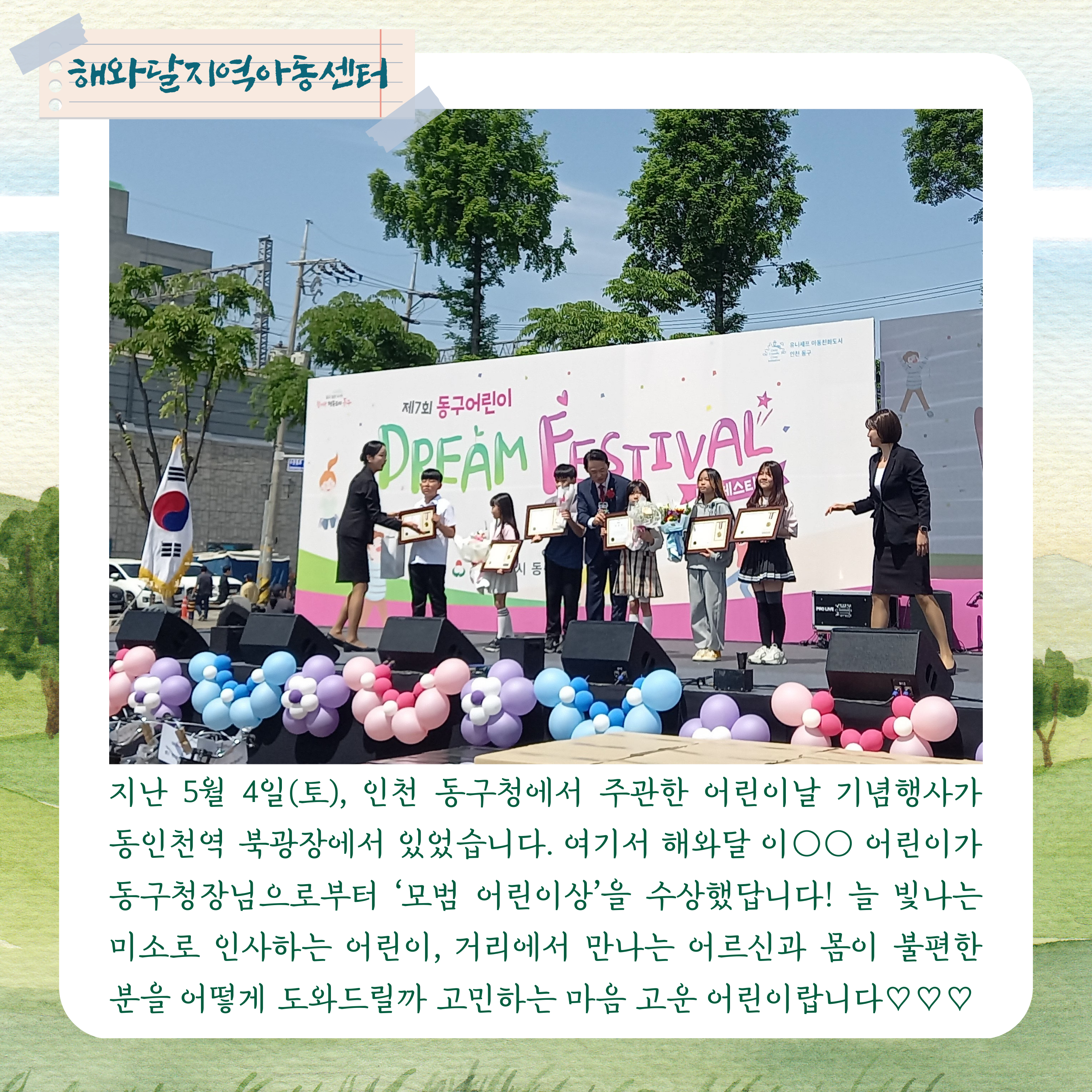 5월 인천나눔의집(솔숲지역아동센터, 해와달지역아동센터, 사무국) 소식을 전해드리며, 5월 한 달간 기도와 후원으로 도와주신 모든 분께 감사 인사를 드립니다!