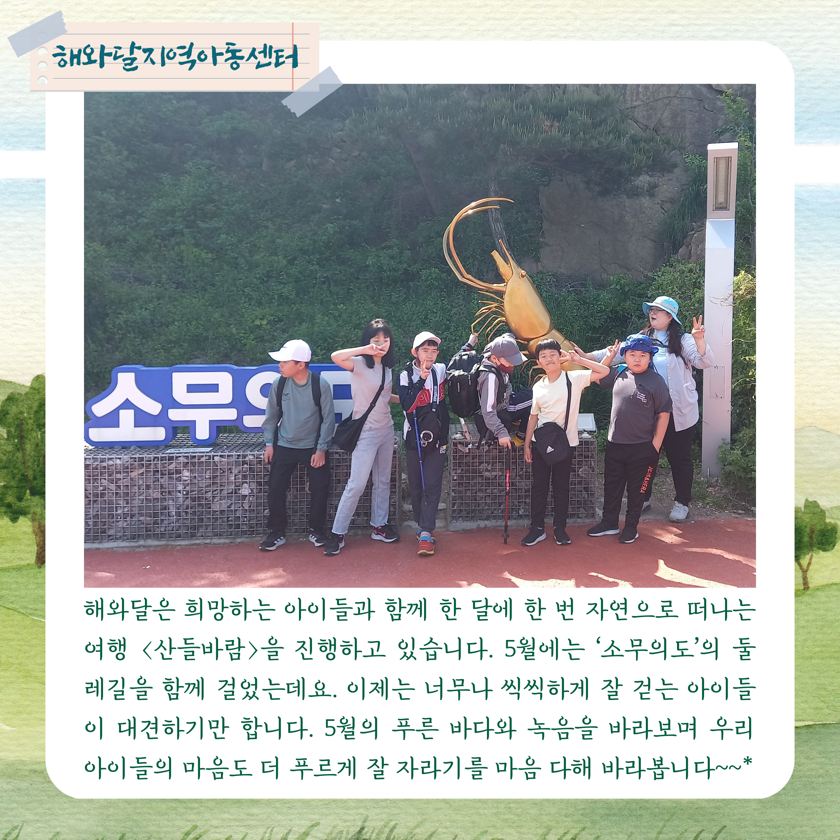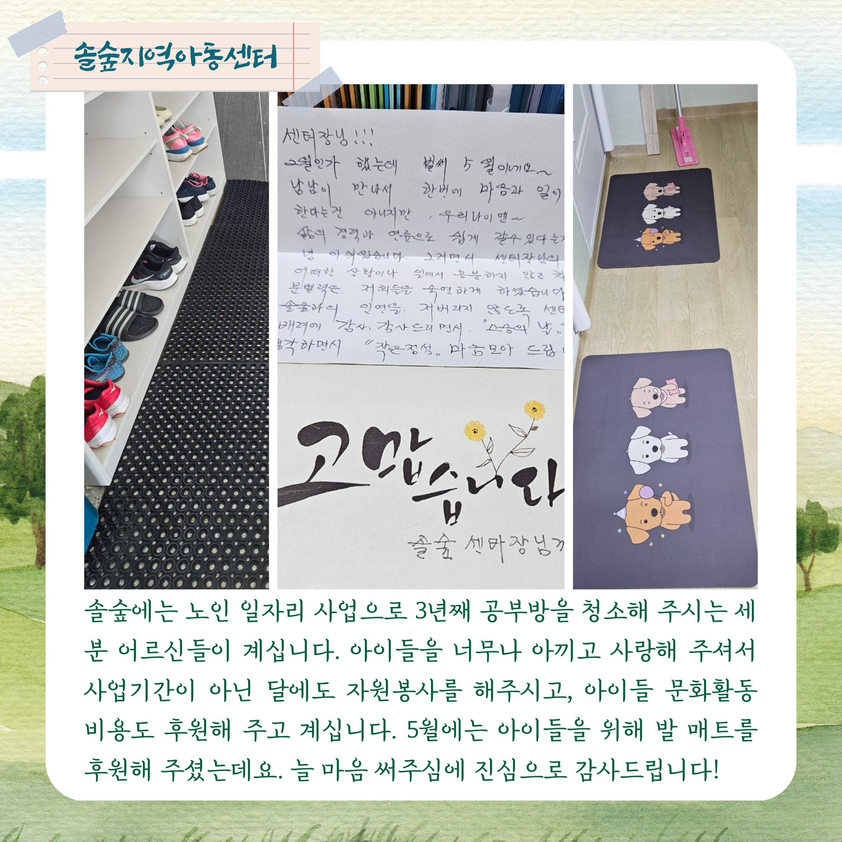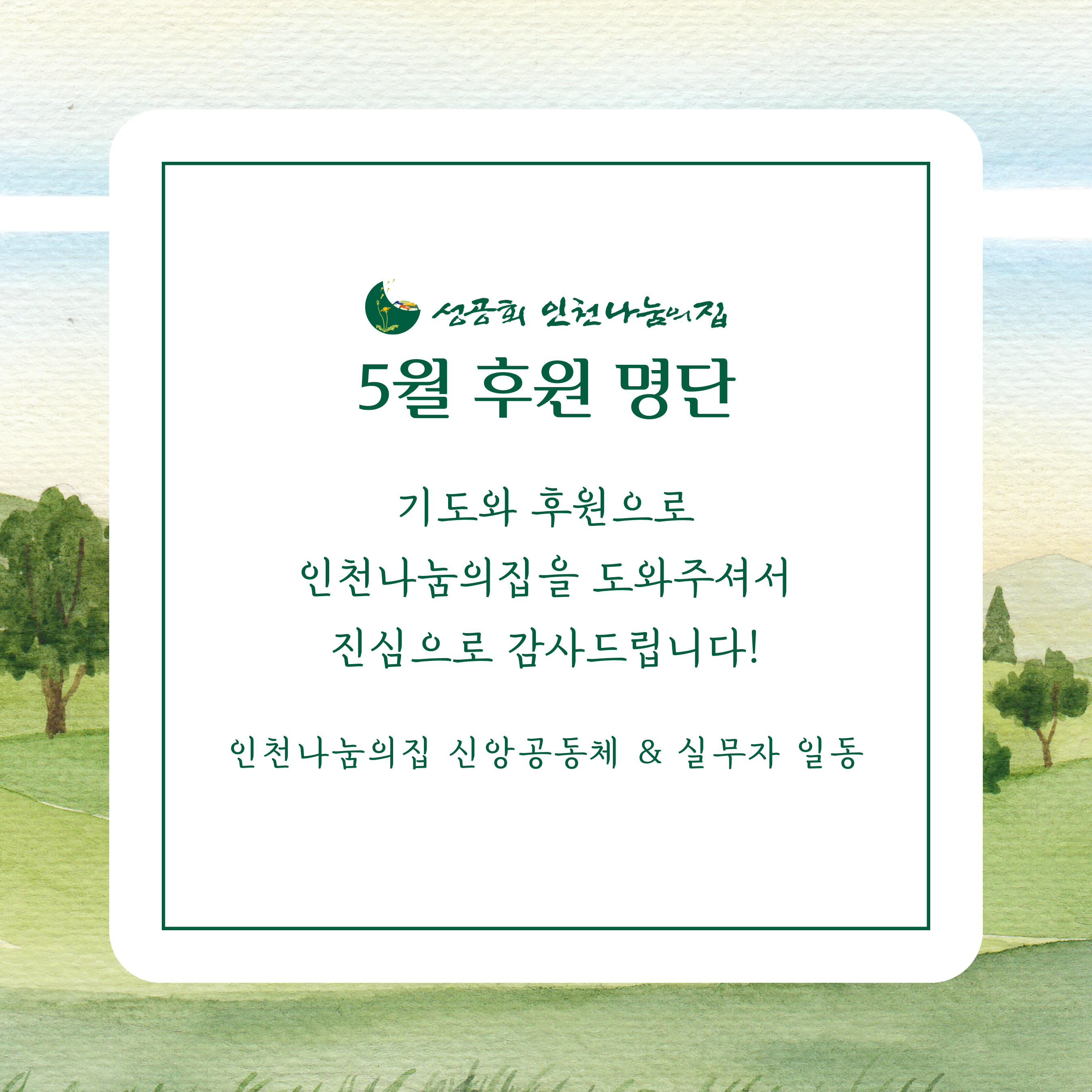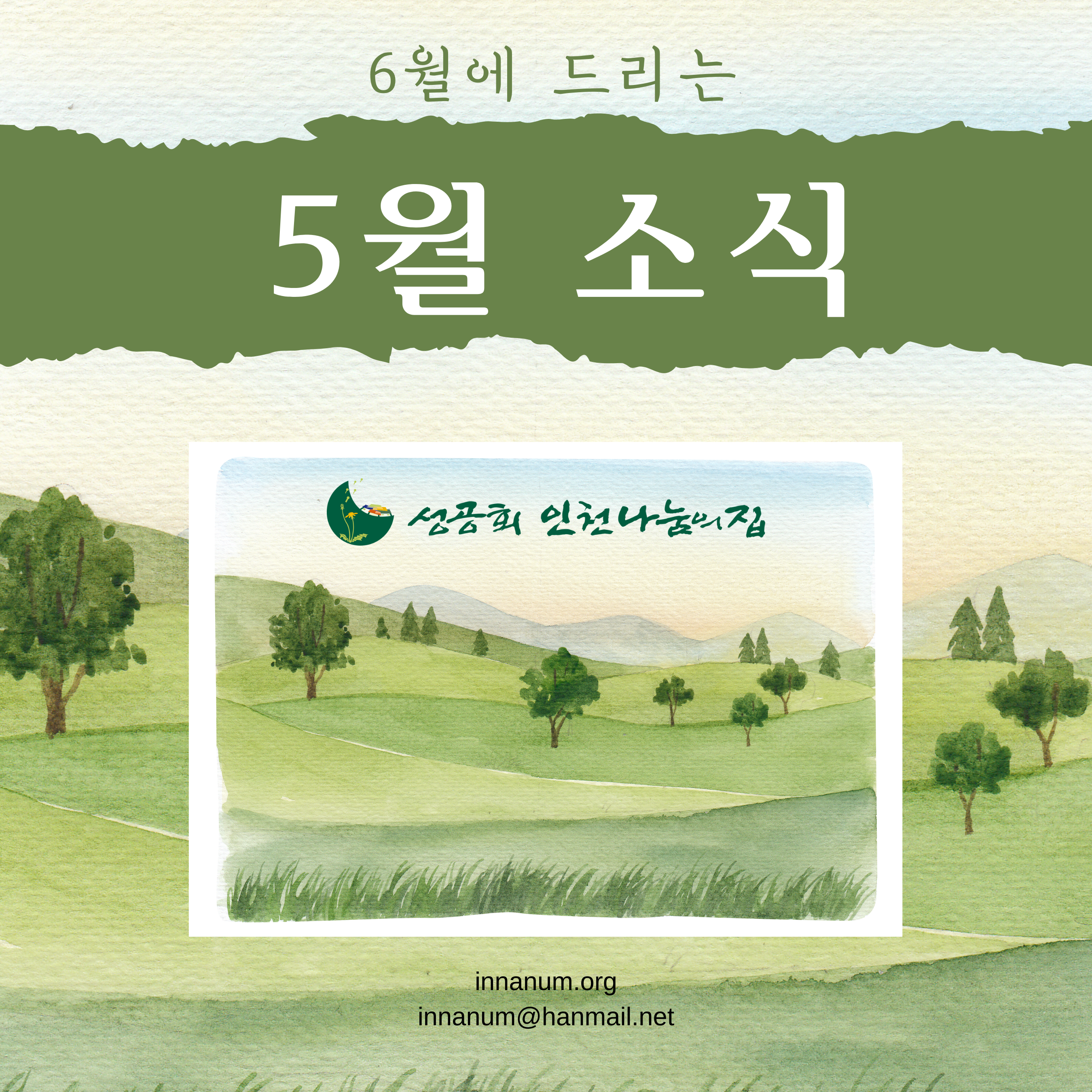 5월 인천나눔의집(솔숲지역아동센터, 해와달지역아동센터, 사무국) 소식을 전해드리며, 5월 한 달간 기도와 후원으로 도와주신 모든 분께 감사 인사를 드립니다!