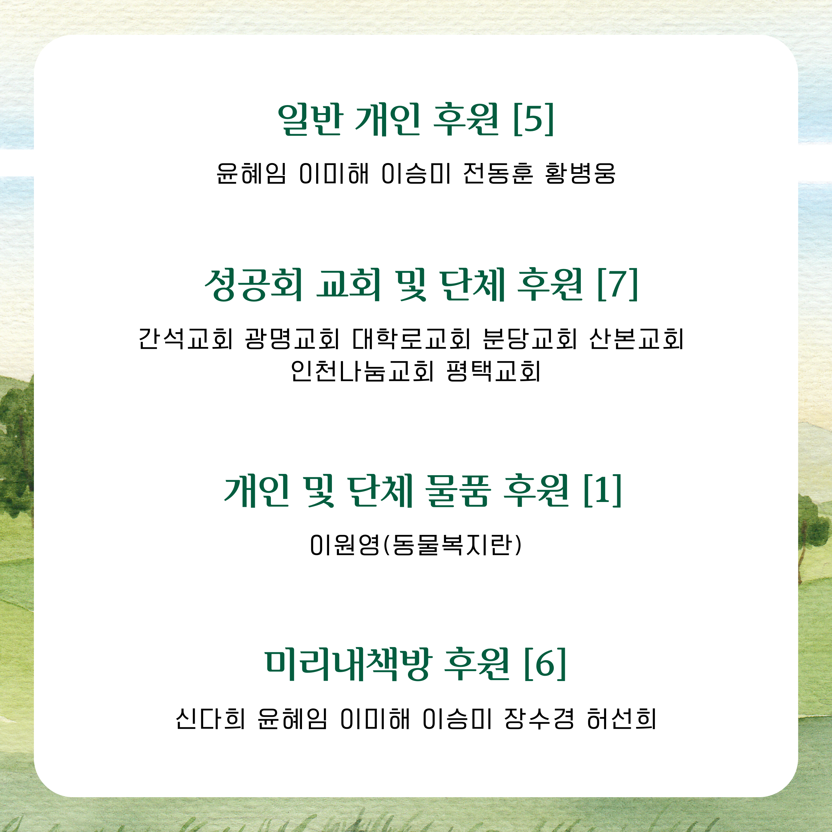 * 혹여 오기나 누락된 후원자분은 이 게시물 아래 댓글로 알려주시거나 나눔의집으로 연락주십시오.