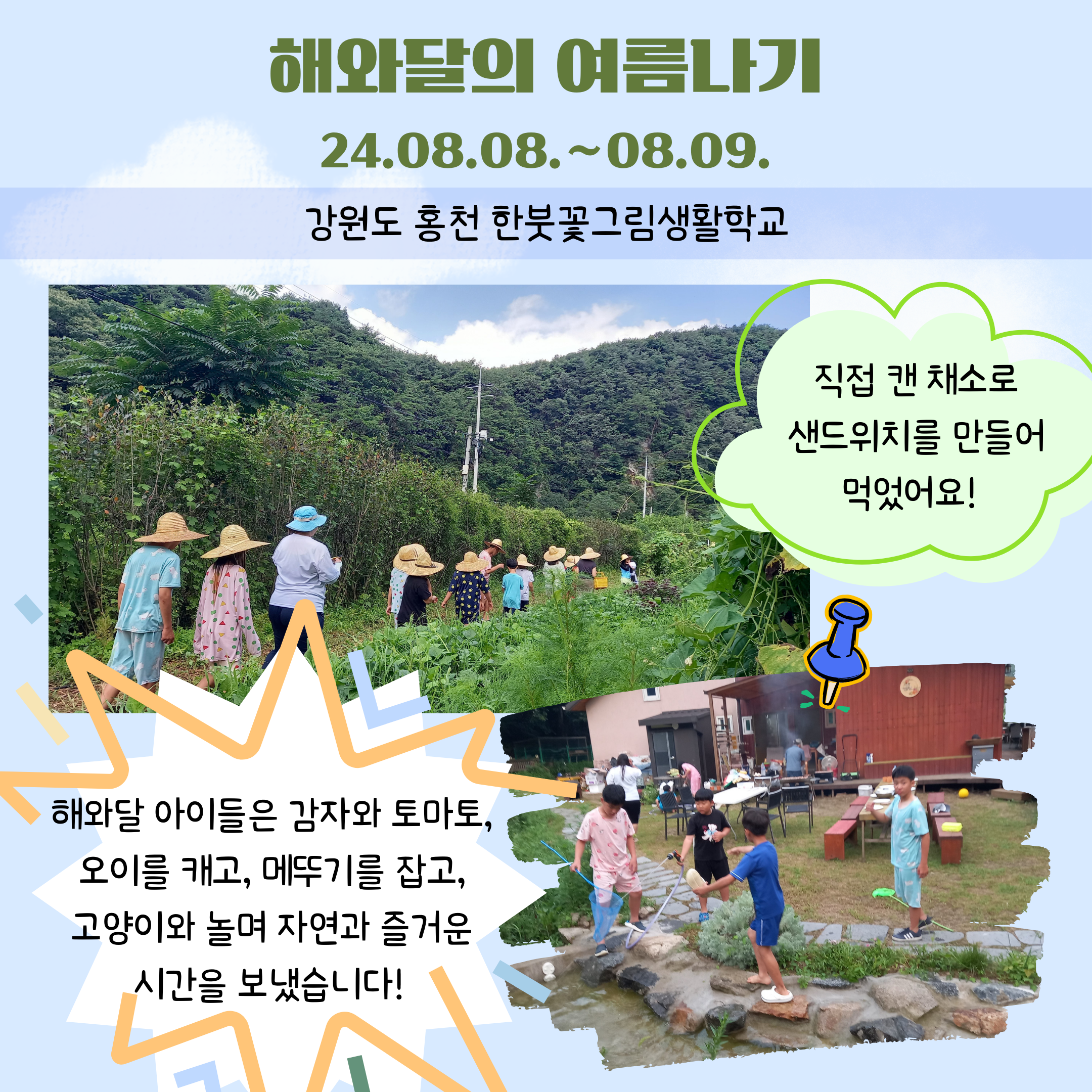 솔숲, 해와달 아이들에게도 이번 여름 캠프가 좋은 기억으로 남았으면 좋겠습니다!