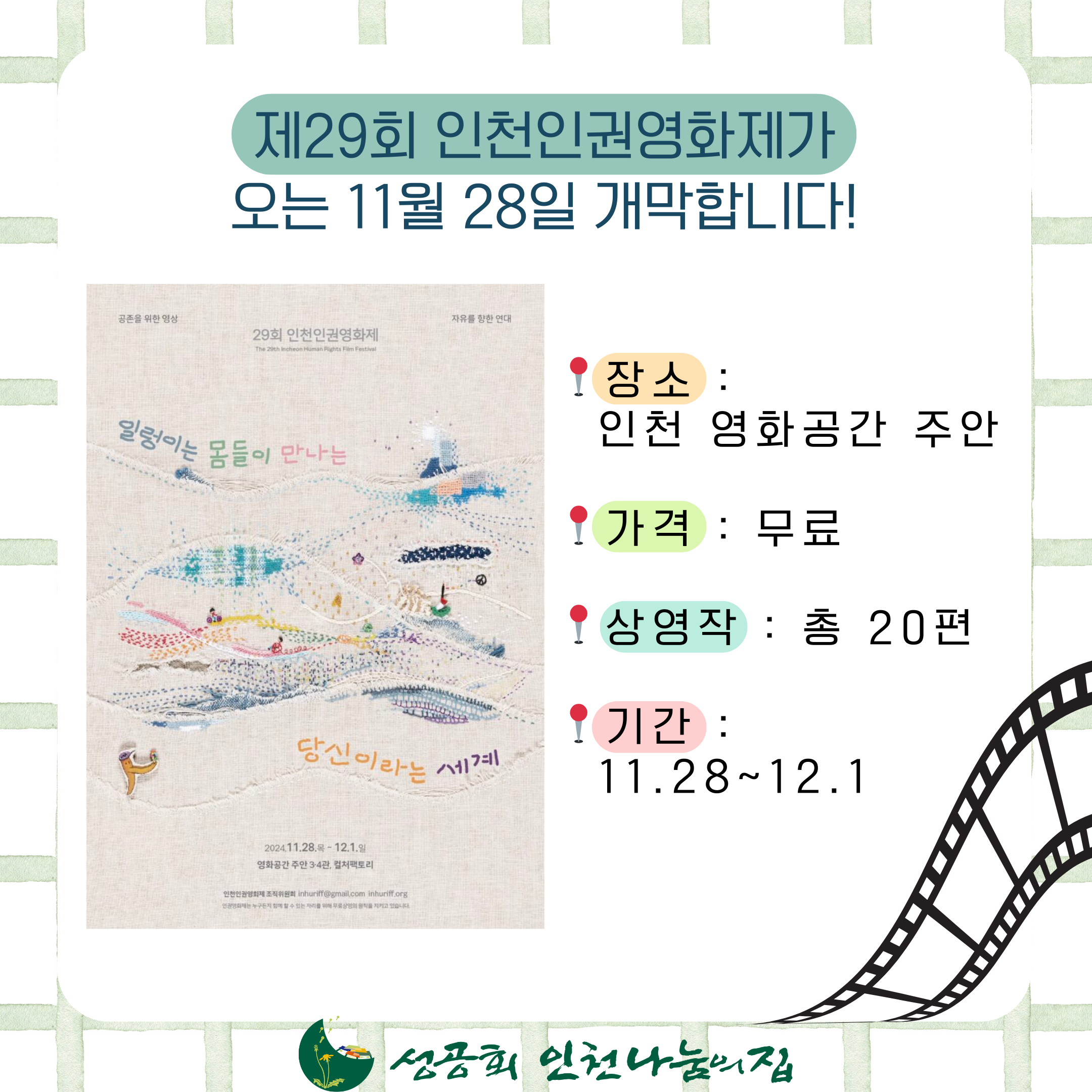 [제29회 인천인권영화제]활동단체/사무국 2024. 11. 14. 18:00
