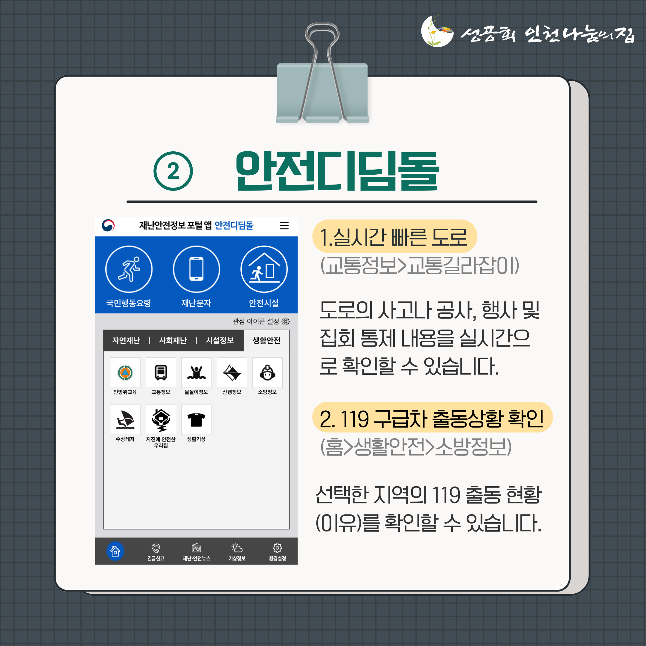 위험 상황이 닥쳤을 때 찾아보는 것보다는 미리 알아두는 게 좋겠죠.