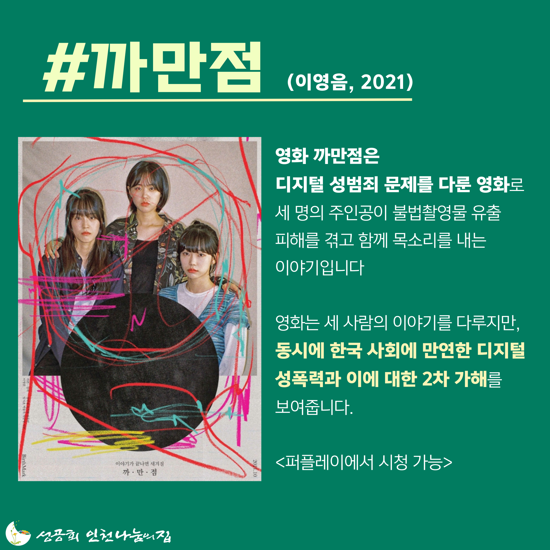 딥페이크 성범죄의 무서운 점 중 하나는 자신이 피해자인지조차 모르는 두려움이죠. 지속적인 관심을 가지고, 피해자 편에서 함께 연대해요!카드뉴스 속 인천나눔의집의 영화 추천도 놓치지 마세요!