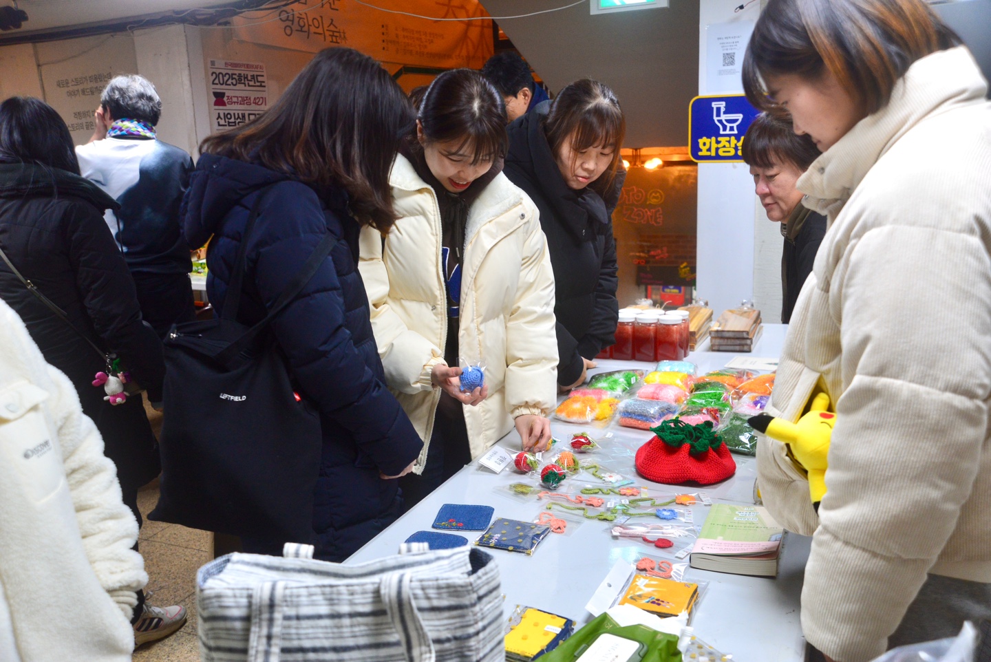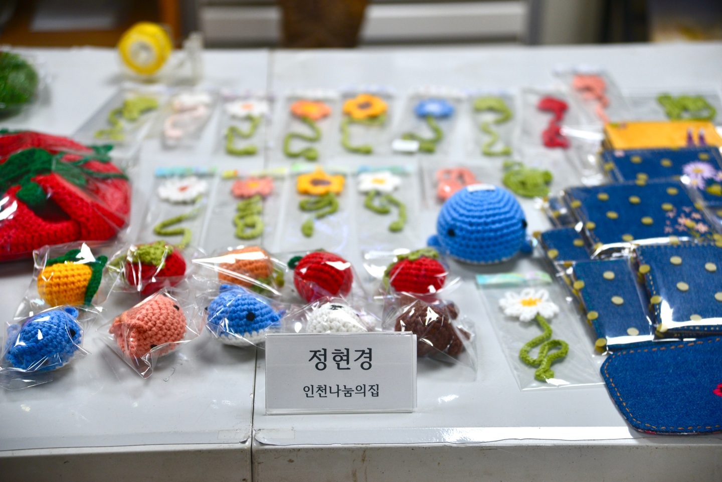 정현경 선생님 - 털실 공예품(좌), 허선희 선생님 - 손바느질 공예품(우)