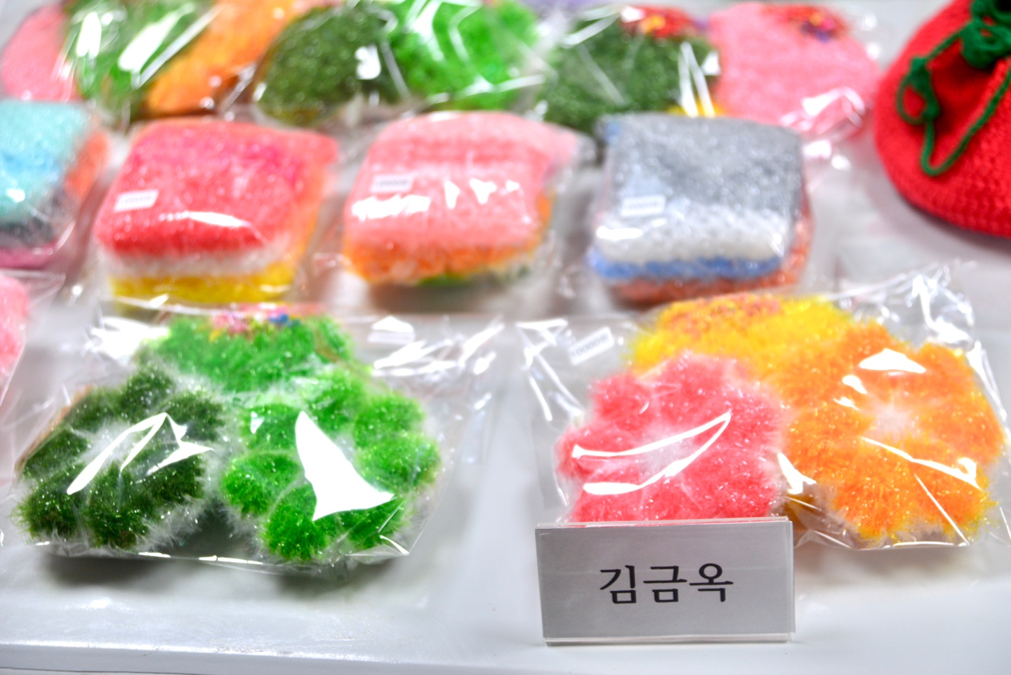 김금옥 선생님 - 손뜨개질 수세미(좌), 허선희 선생님 - 손바느질 가방(우)