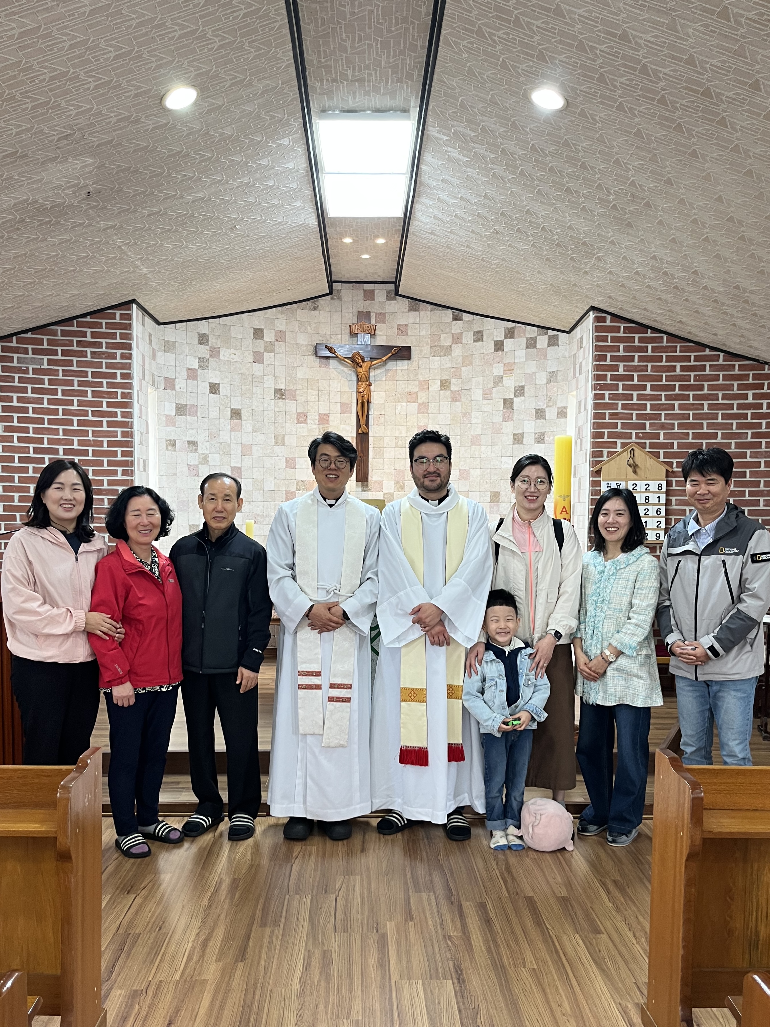 묵주축복기도를 해주시는 김디모데 신부님과 신앙공동체 식구들