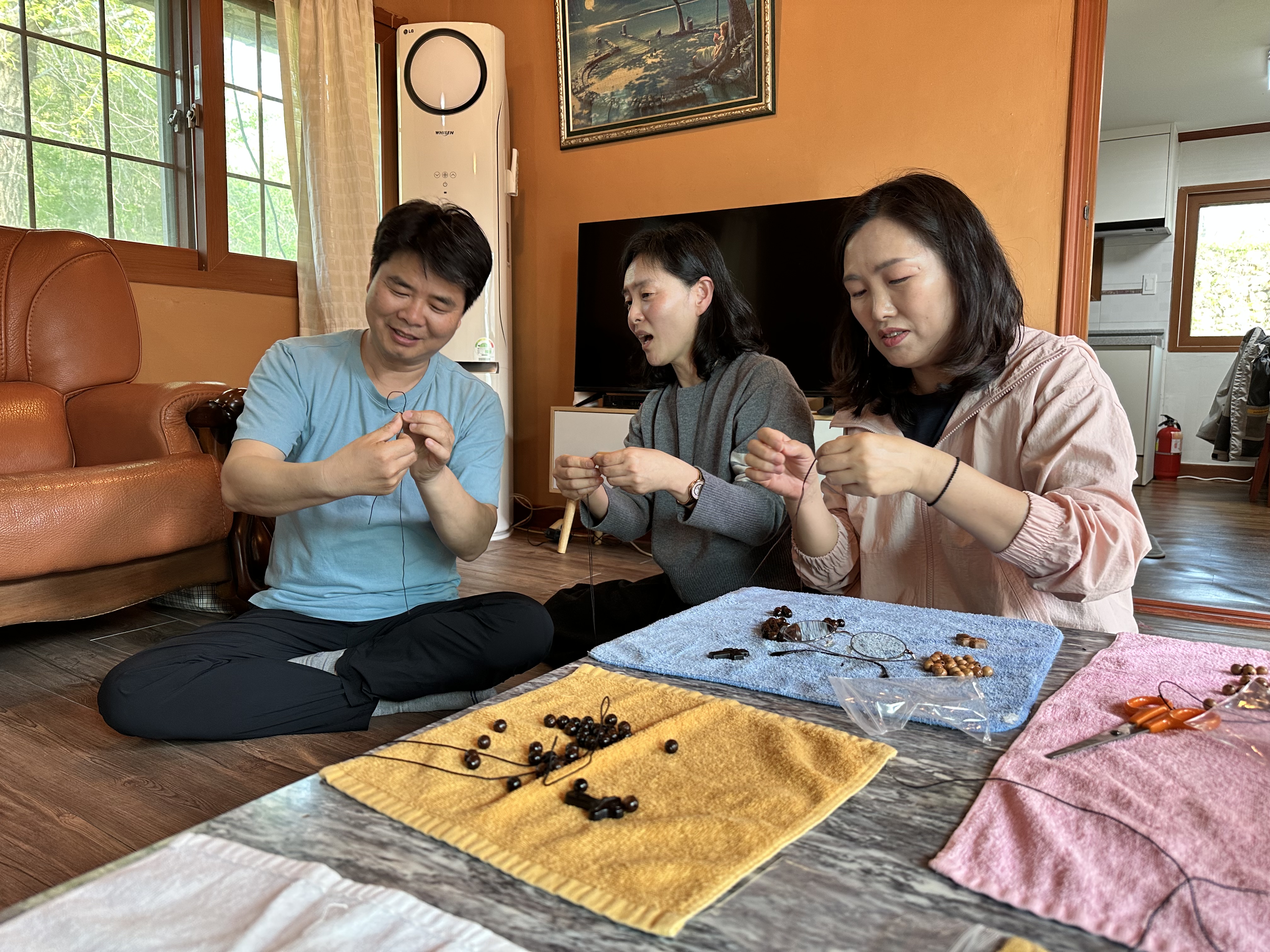 이번 '묵주와 함께하는 피정'은, 각자 자신의 묵주를 직접 만들고, 김돈회 디모데 신부님(초지교회 관할사제, 인천나눔의집 전임 원장)으로부터 묵주축복기도를 받아, 매일 주님과 가까이 함께할 수 있는 훌륭한 신앙의 도구를 완성하는 일정이었습니다.
