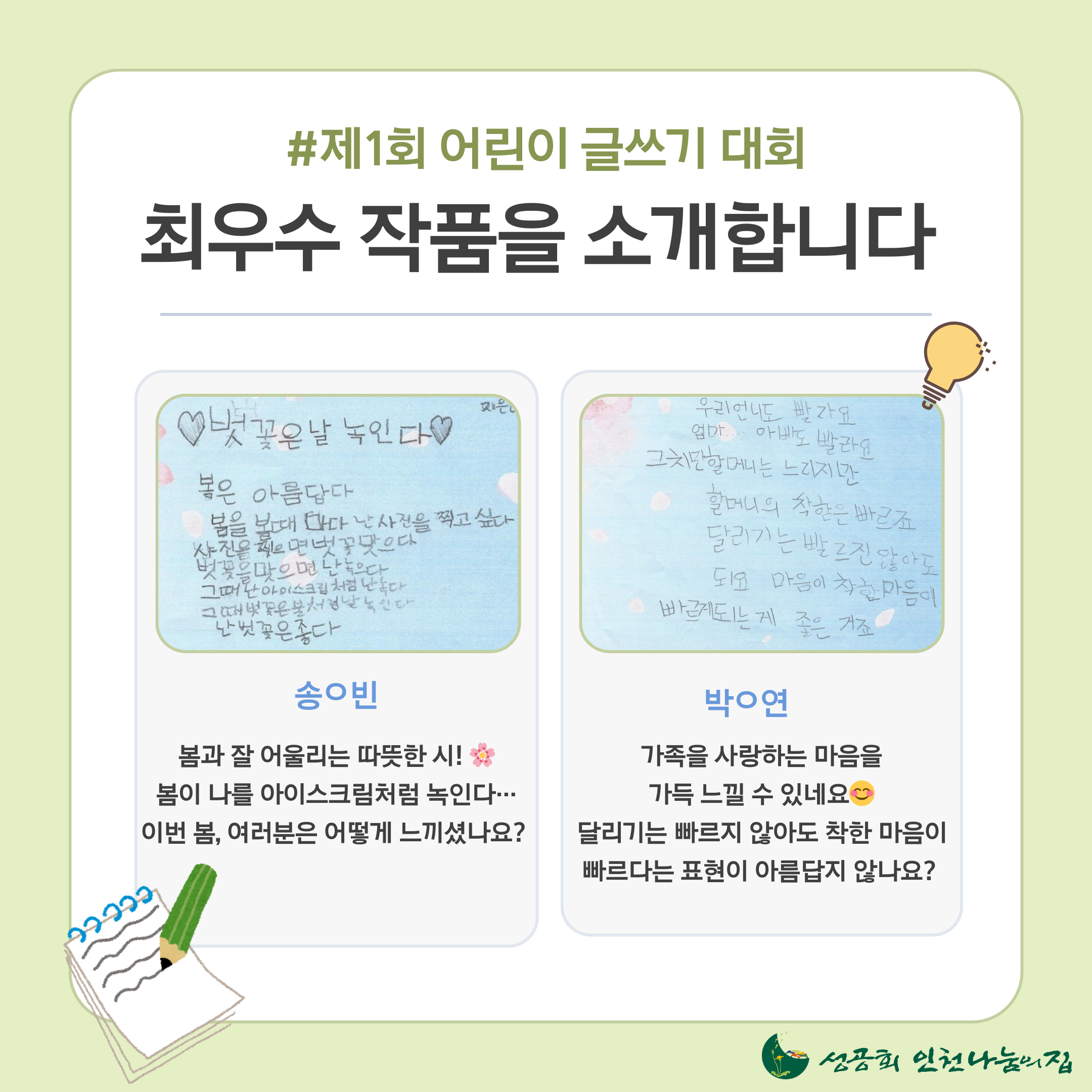 ㅇ이번 카드뉴스는 솔숲 이야기입니다! 글쓰기 이벤트 시상식부터 솔숲 장날, 독서수업까지!