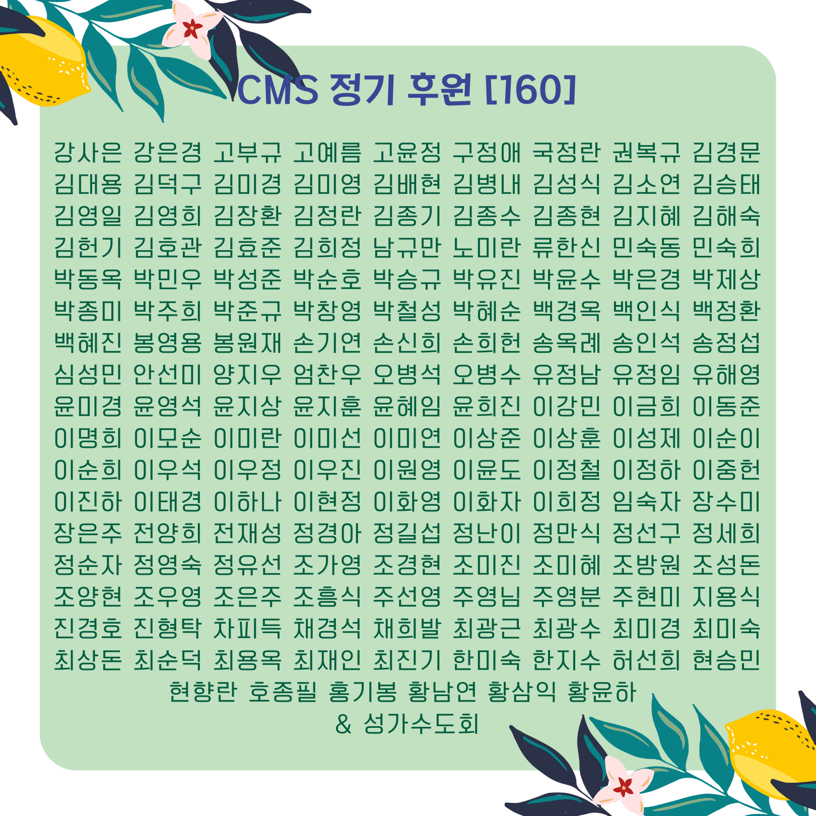 * 혹여 오기나 누락된 후원자분은 이 게시물 아래 댓글로 알려주시거나 나눔의집(032-764-0186)으로 연락주십시오.