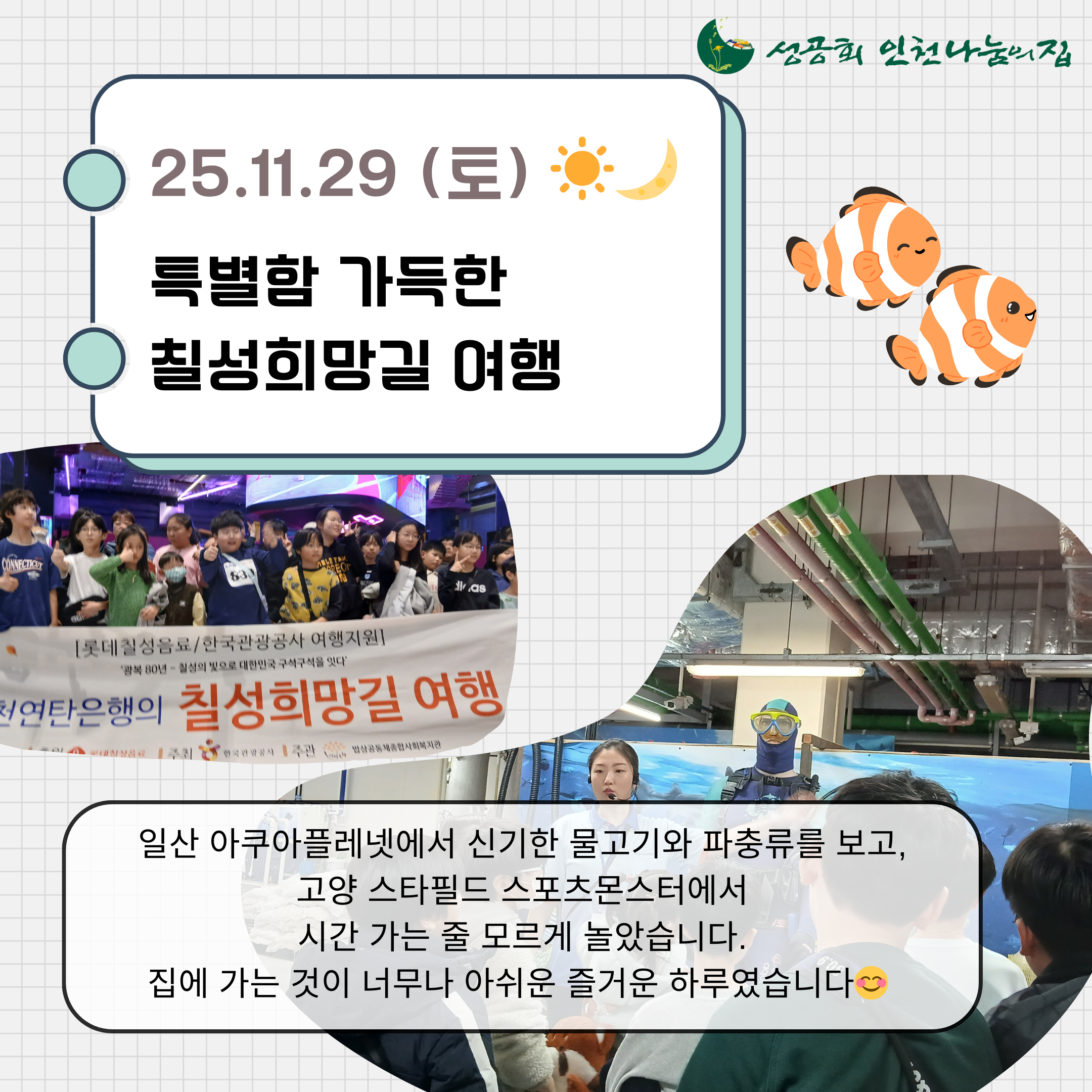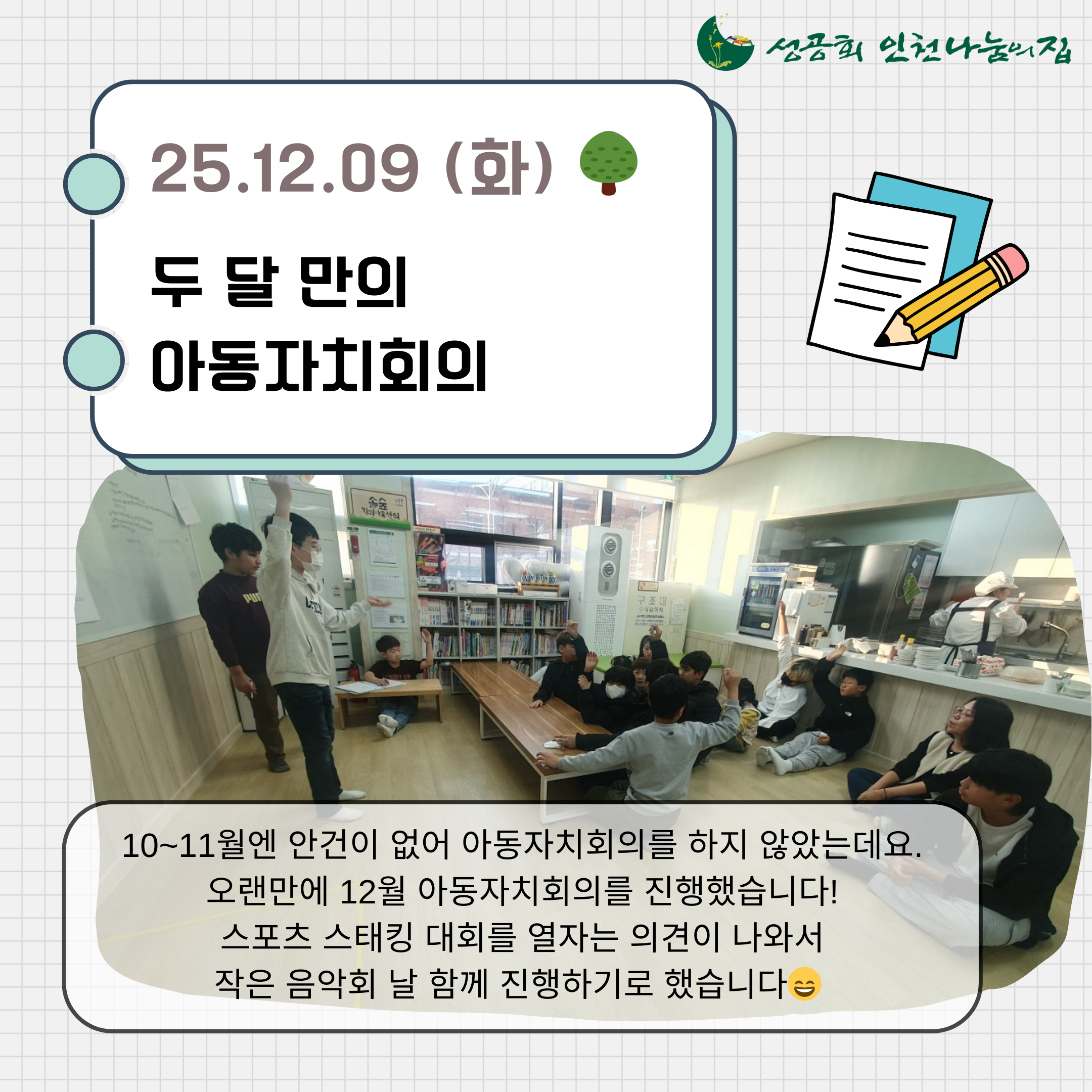 2025년 한 해 동안 함께해 주셔서 감사합니다 (0) 2025.12.31 [안녕, 2025 공부방✋] (0) 2025.12.26 11월 후원 감사 인사드립니다 (0) 2025.12.03 [가을에 물든 아이들🍂] (0) 2025.11.27 [가을 가득한 공부방 일상🍁] (0) 2025.11.13