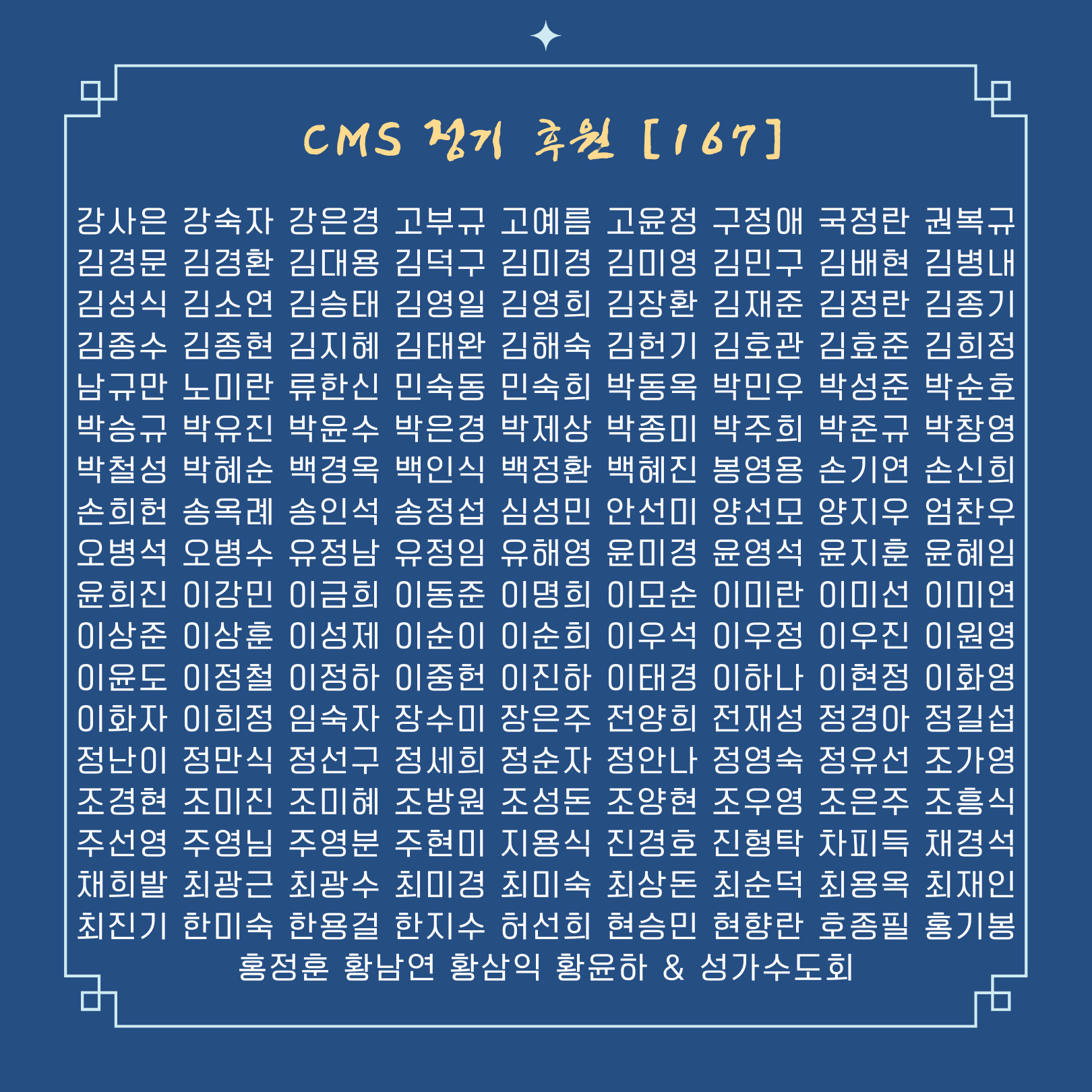 * 혹여 오기나 누락된 후원자분은 이 게시물 아래 댓글로 알려주시거나 나눔의집(032-764-0186)으로 연락주십시오.