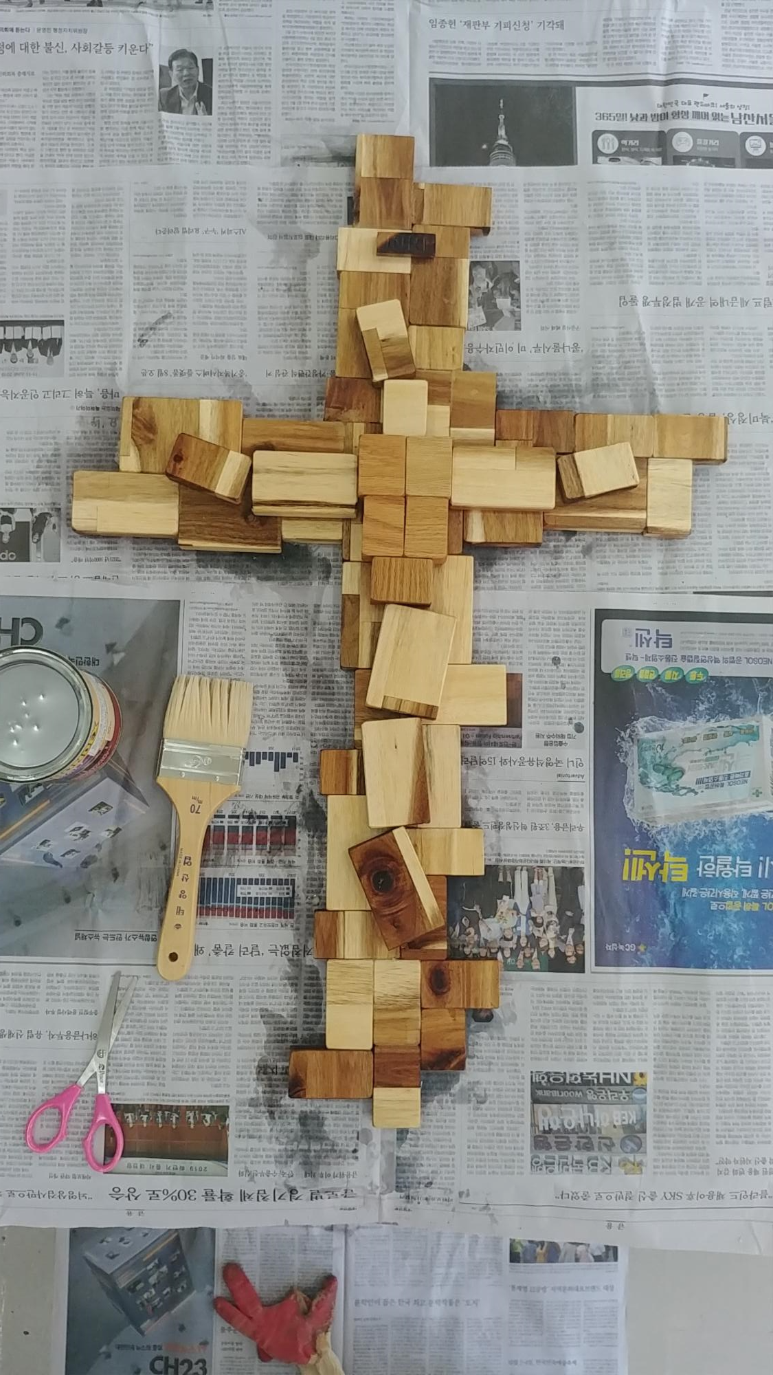 십자가는 지역아동센터 아이들이 공작을 하고 남은 짜투리 목재로 만들어졌답니다.