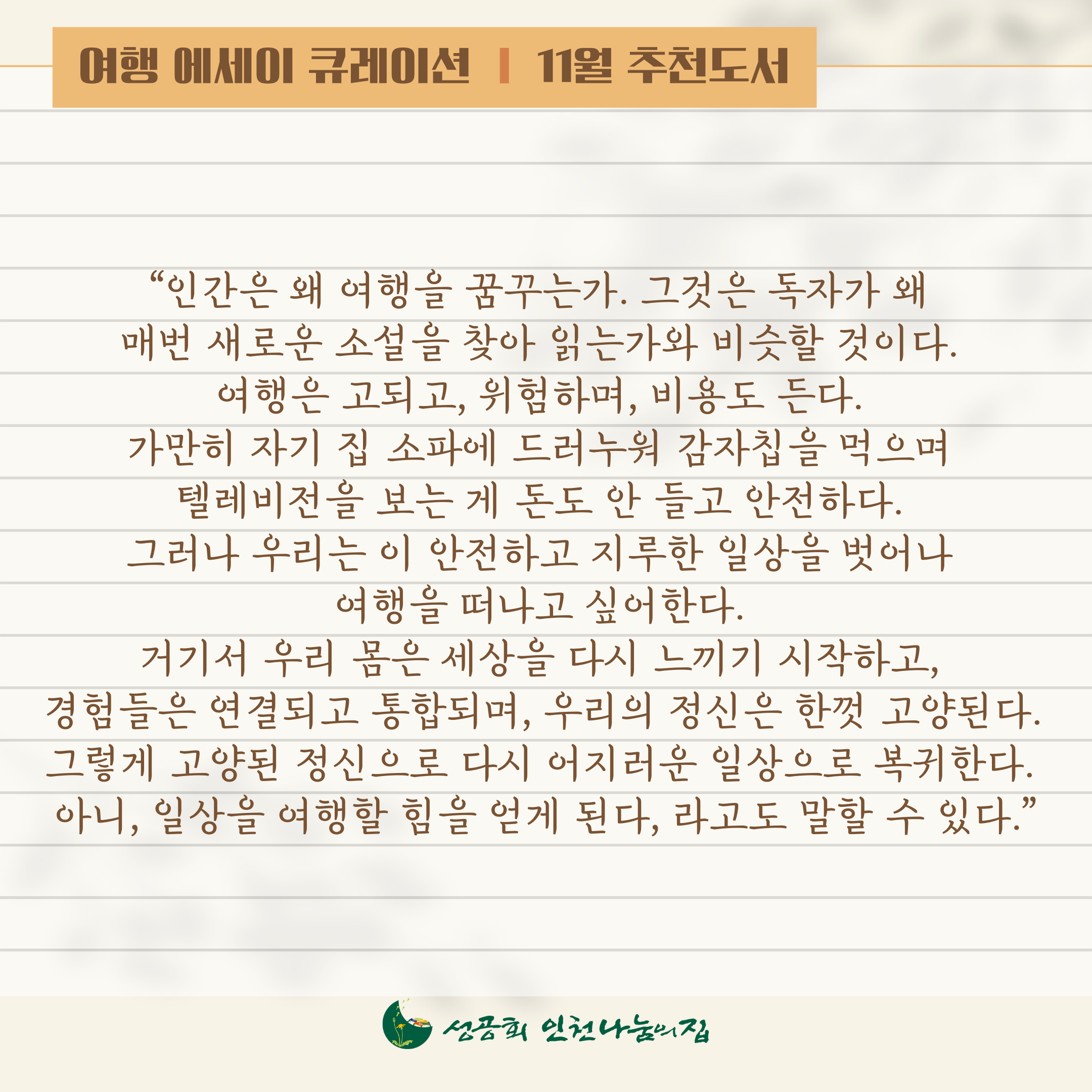 공정여행가 사제의 여행 에세이 큐레이션!