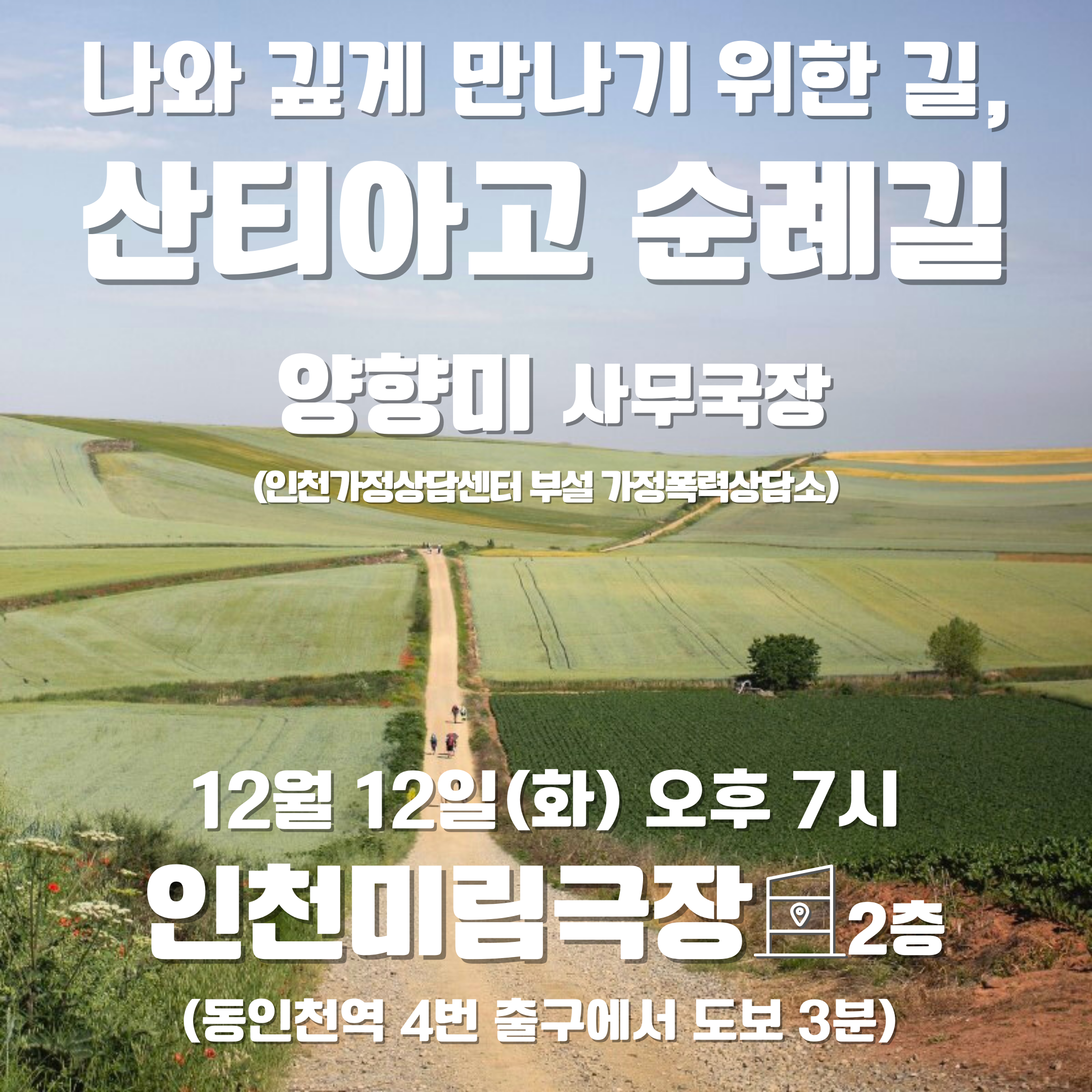 오랫동안 인천나눔의집에서 심리상담, 마음치료 등으로 아이들과 이웃분들을 위해 봉사해오신 <인천가정상담센터 부설 가족폭력상담소>의 양향미 사무국장님을 모시고 산티아고 순례길을 함께 걷습니다.