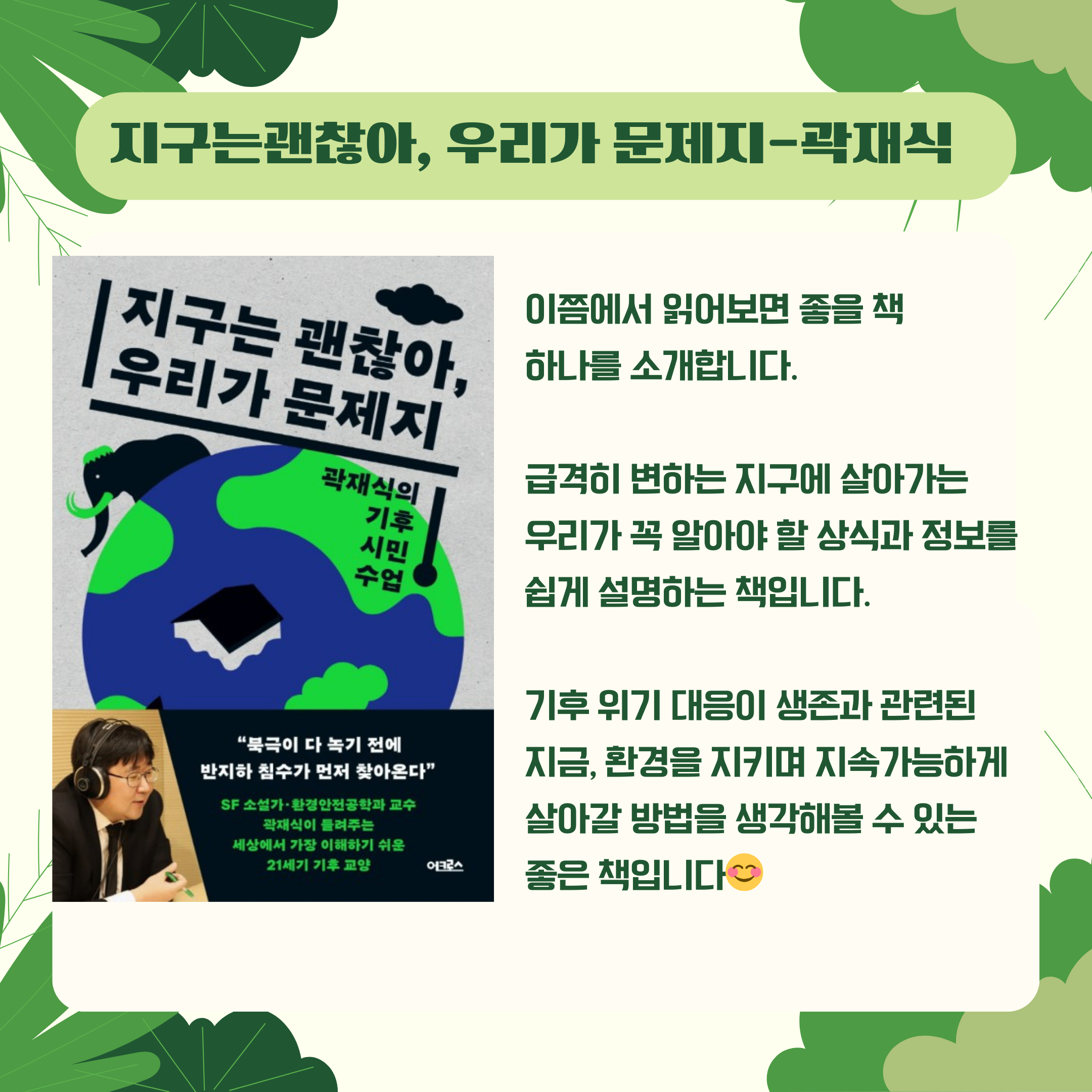 아이들, 그리고 많은 사람들이 기후위기와 환경 문제에 더 관심을 가져 다함께 노력해 지속가능한 지구를 만들어 가면 좋겠습니다!