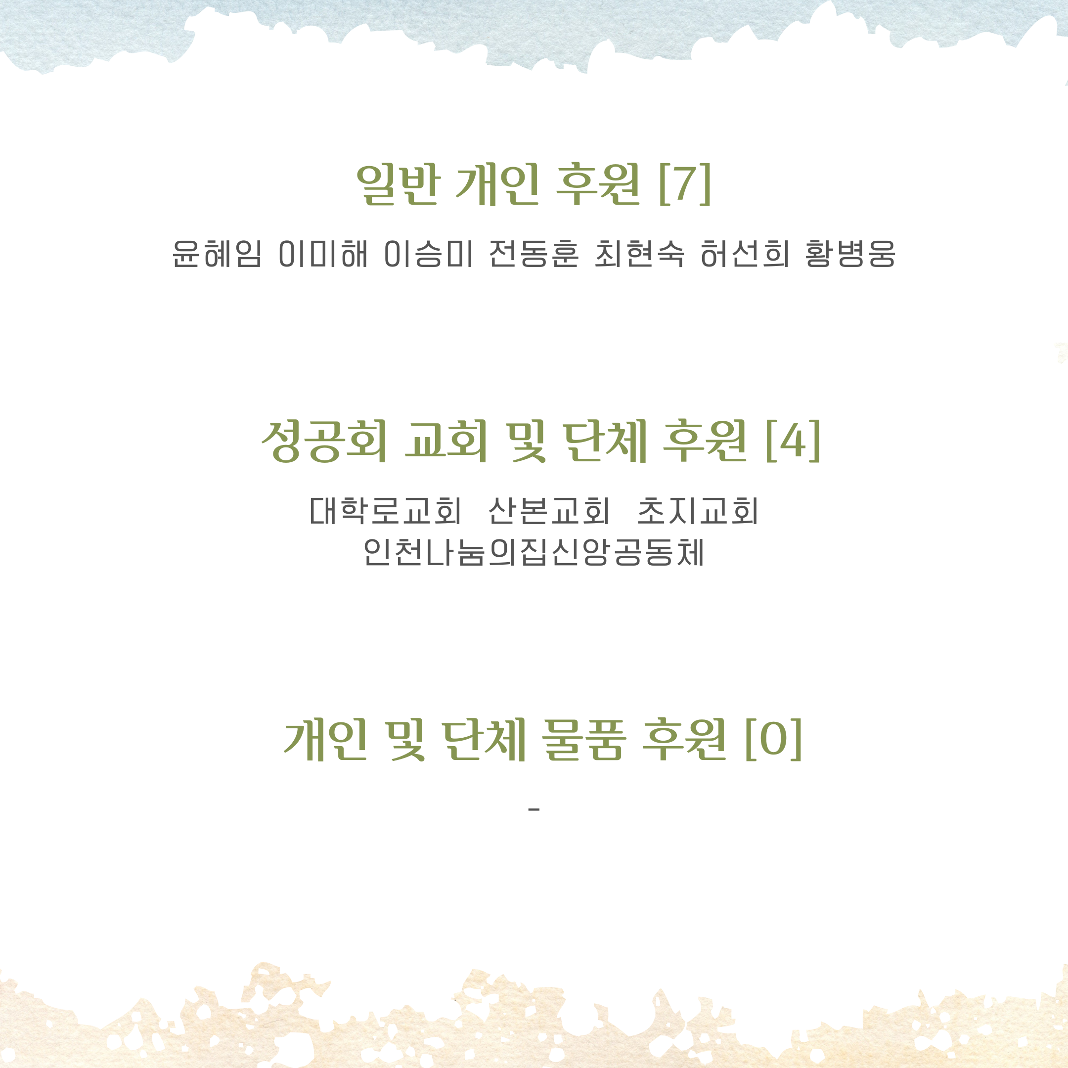 * 혹여 오기나 누락된 후원자분은 이 게시물 아래 댓글로 알려주시거나 나눔의집(032-764-0186)으로 연락주십시오.