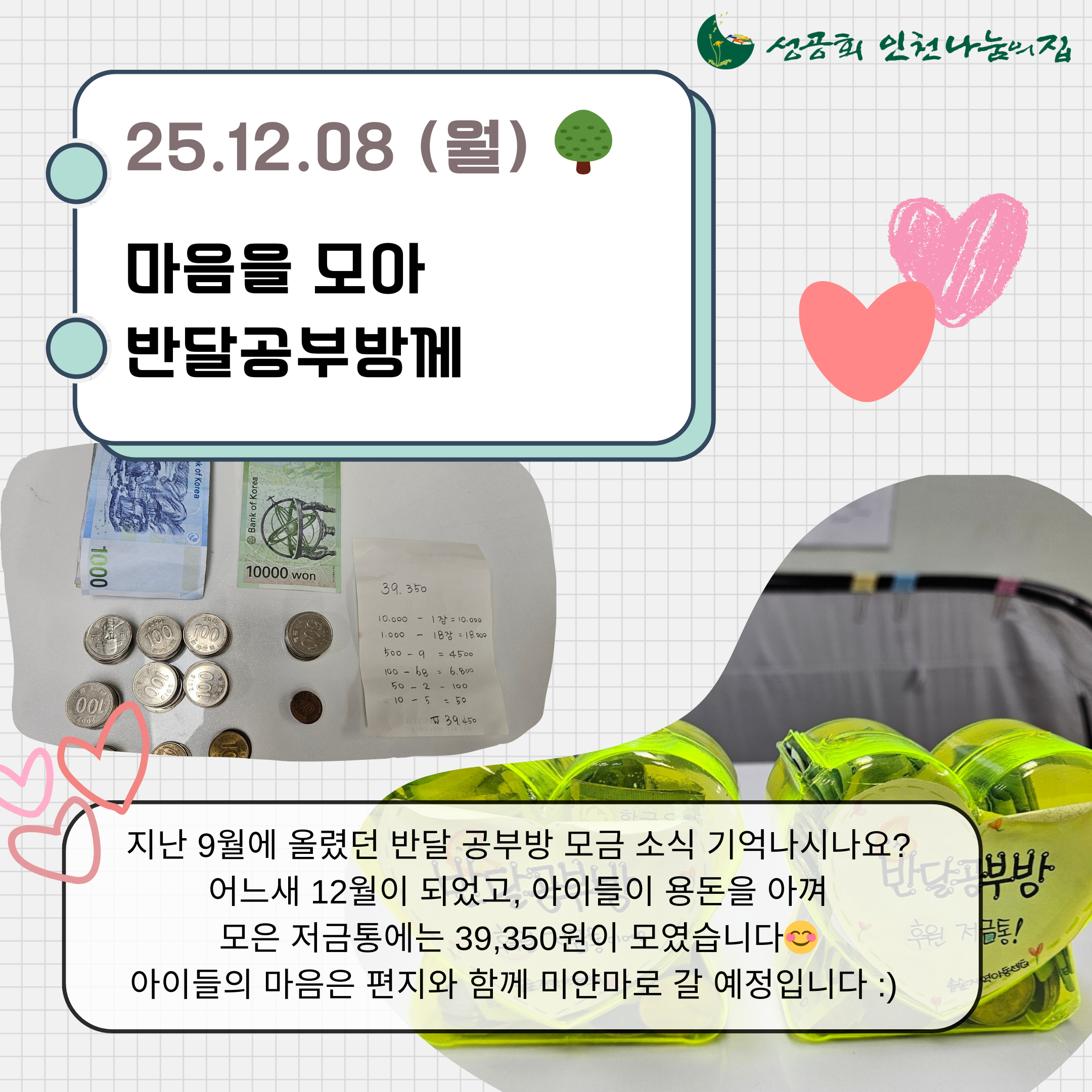 + 주님의 평화를 빕니다. 인천나눔의집 원장사제 최성모 요한입니다. 1989년 6월 25일 인천 송림동 달동네에서 시작한 인천나눔의집은 현재 두 곳의 지역아동센터를 통해 돌봄과 도움이 필요한 어