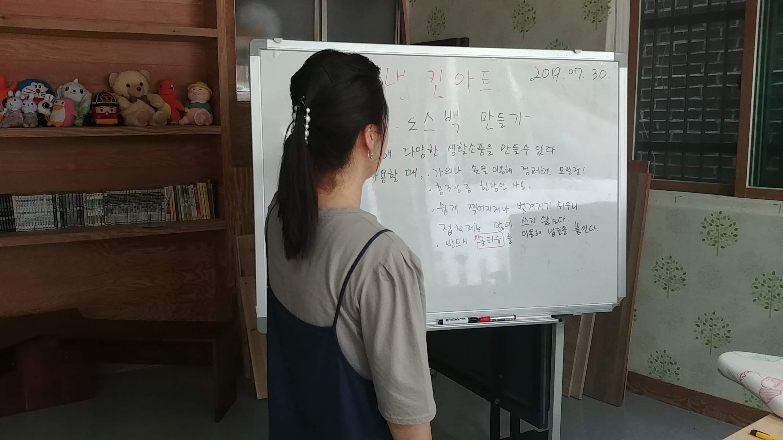 각자 주어진 에코백에 자기만의 디자인을 완성했답니다.
